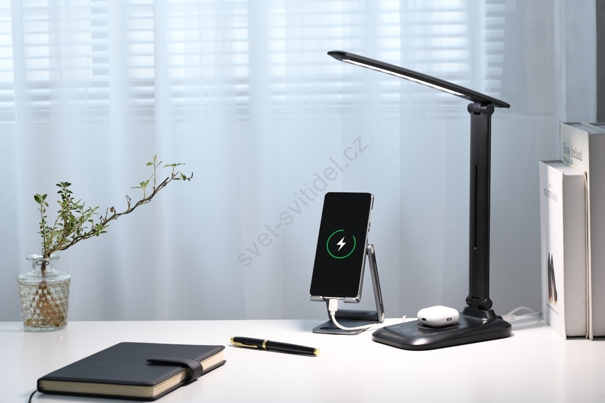 • LED Stmívatelná stolní lampa s bezdrátovým nabíjením QI a USB LUMI LED/7W/230V černá