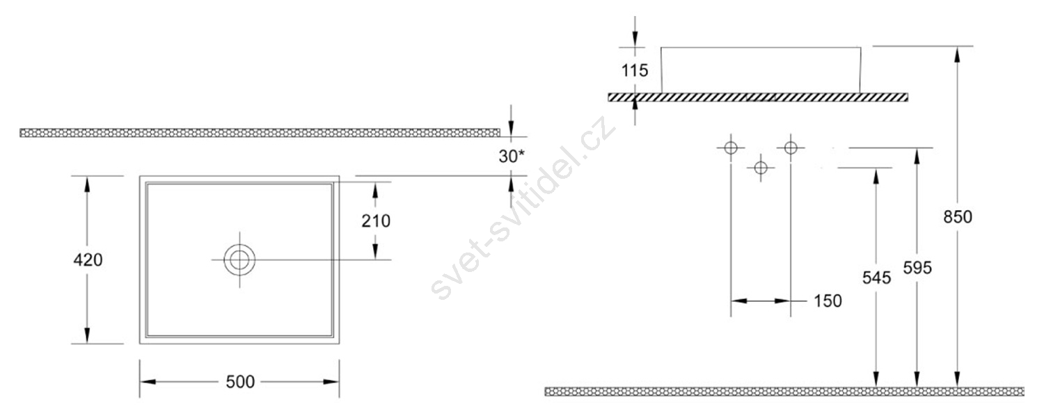 • Umyvadlo na desku je vyrobeno z keramiky.