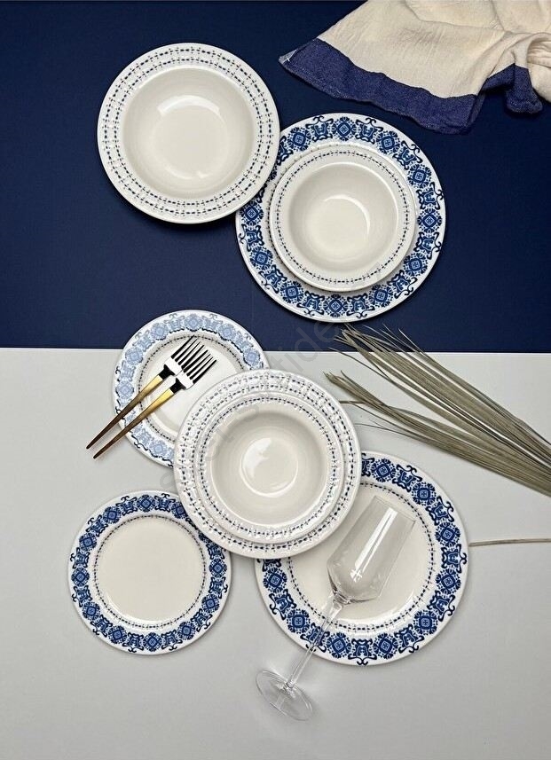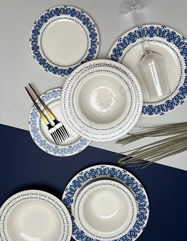 Jídelní sada 16 ks modrá/bílá/porcelán