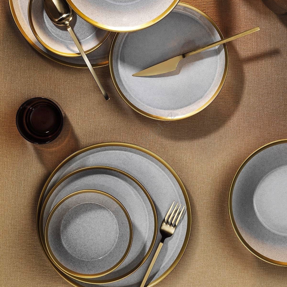 Jídelní sada 16 ks šedá/zlatá/porcelán