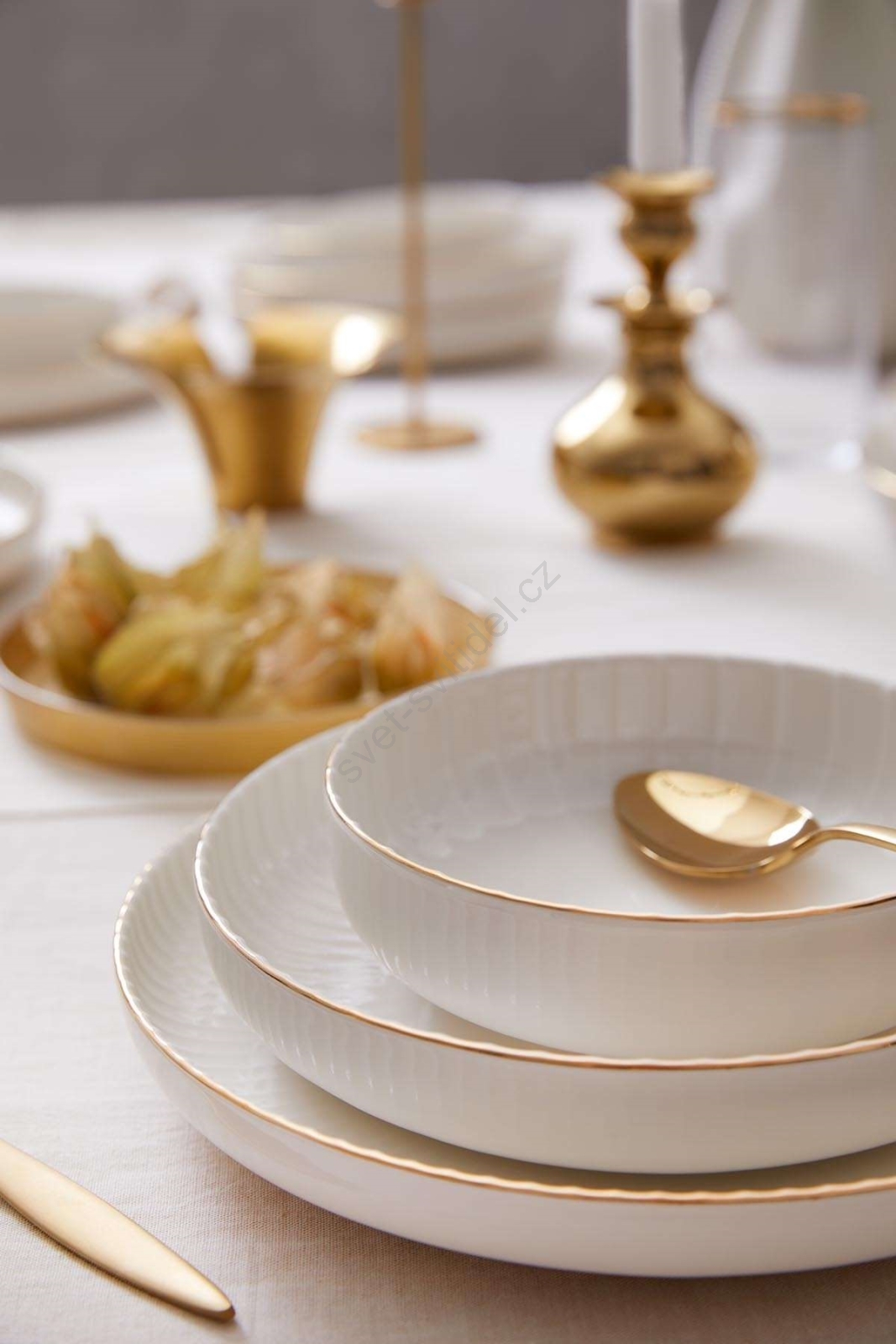 Jídelní sada 18 ks bílá/zlatá/porcelán