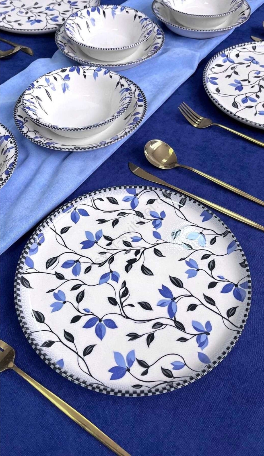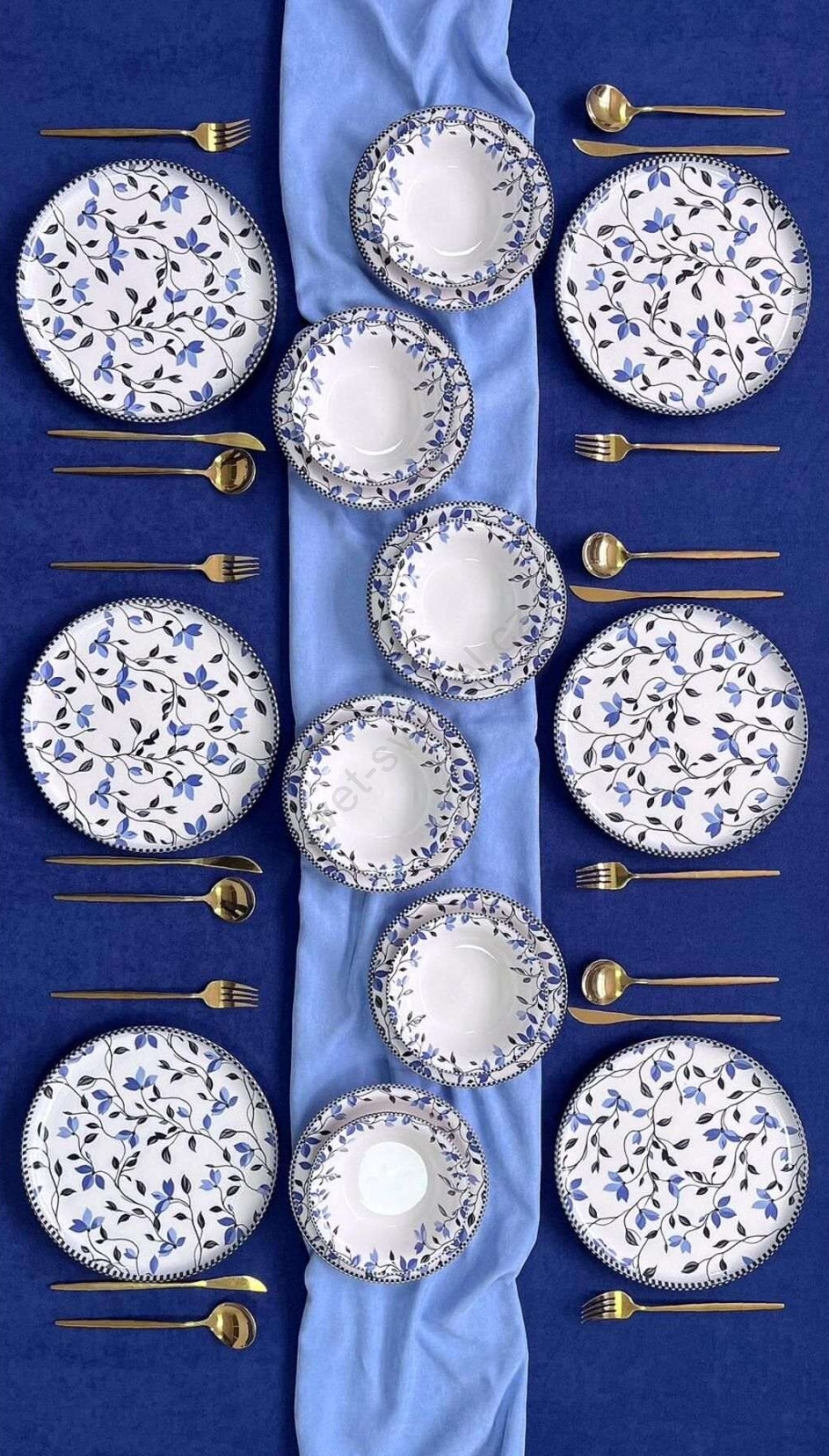 Jídelní sada 18 ks modrá/bílá/keramika
