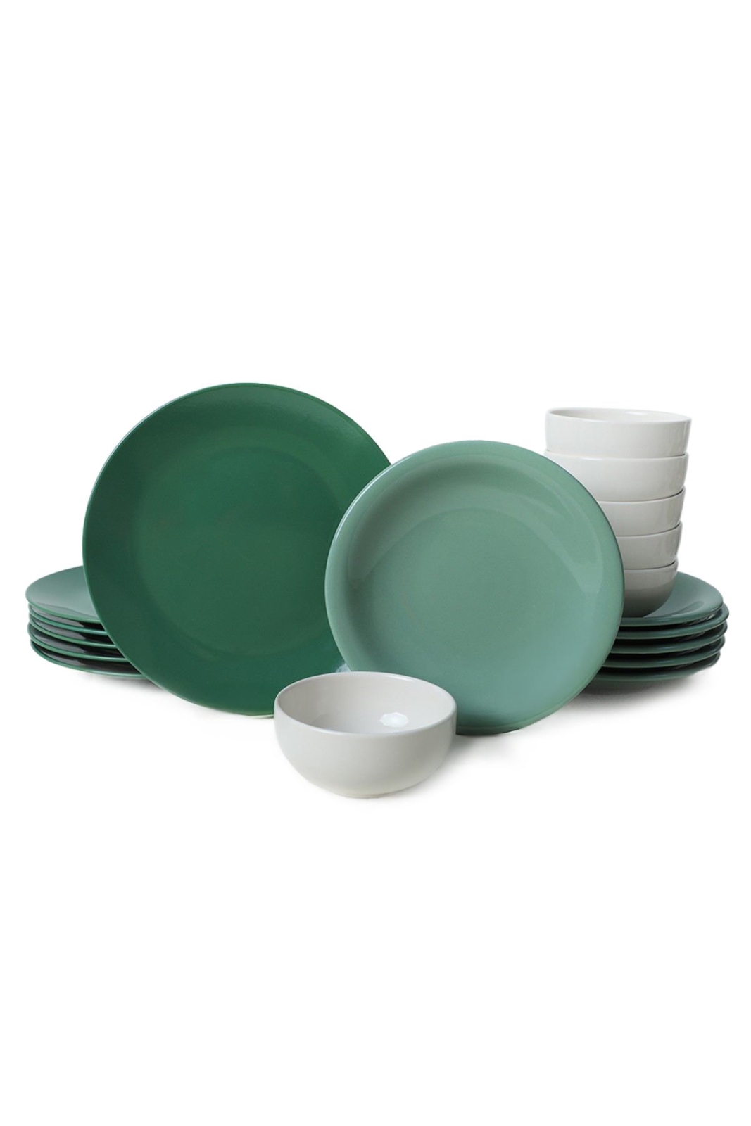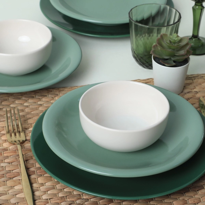 Jídelní sada 18 ks zelená/bílá/keramika