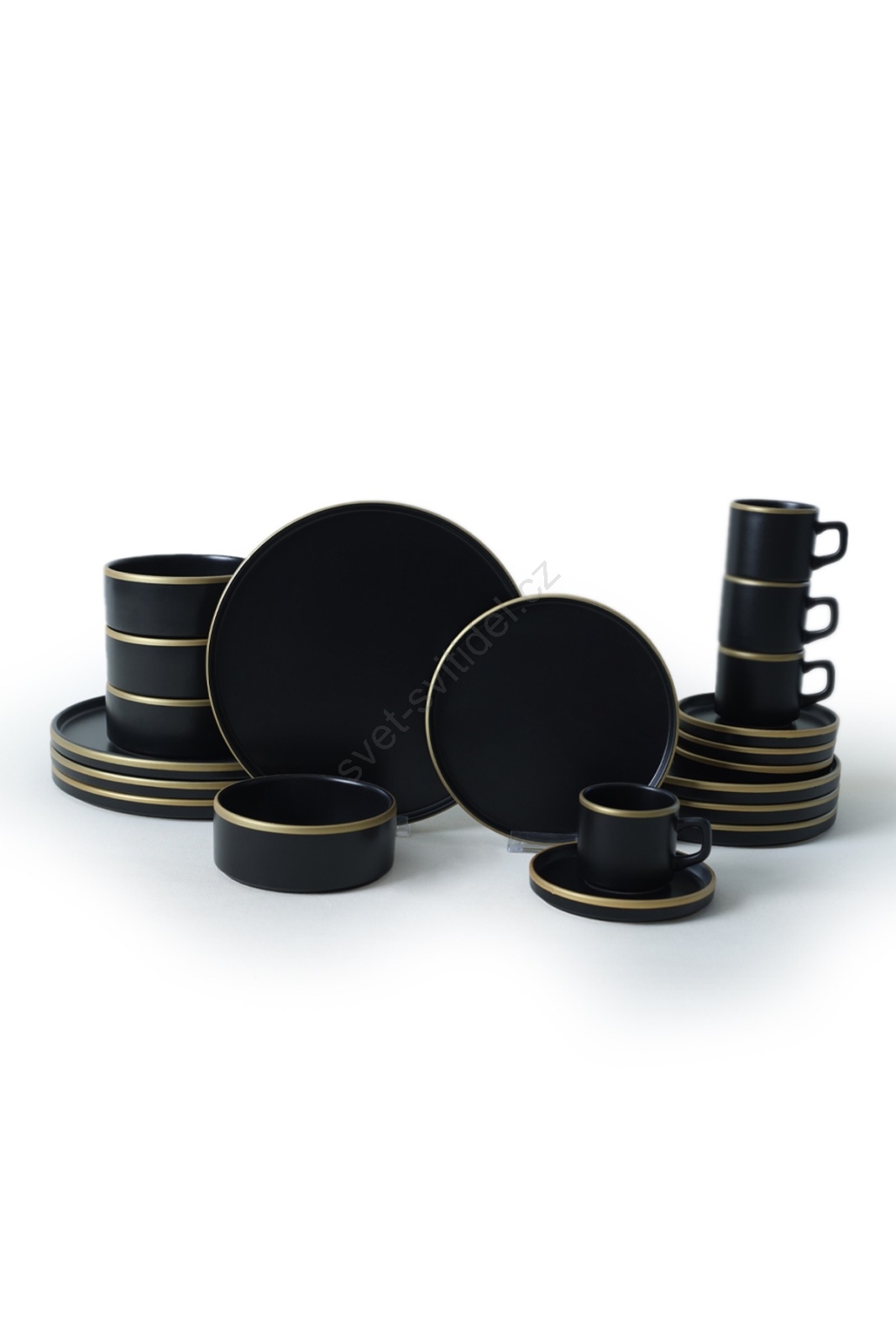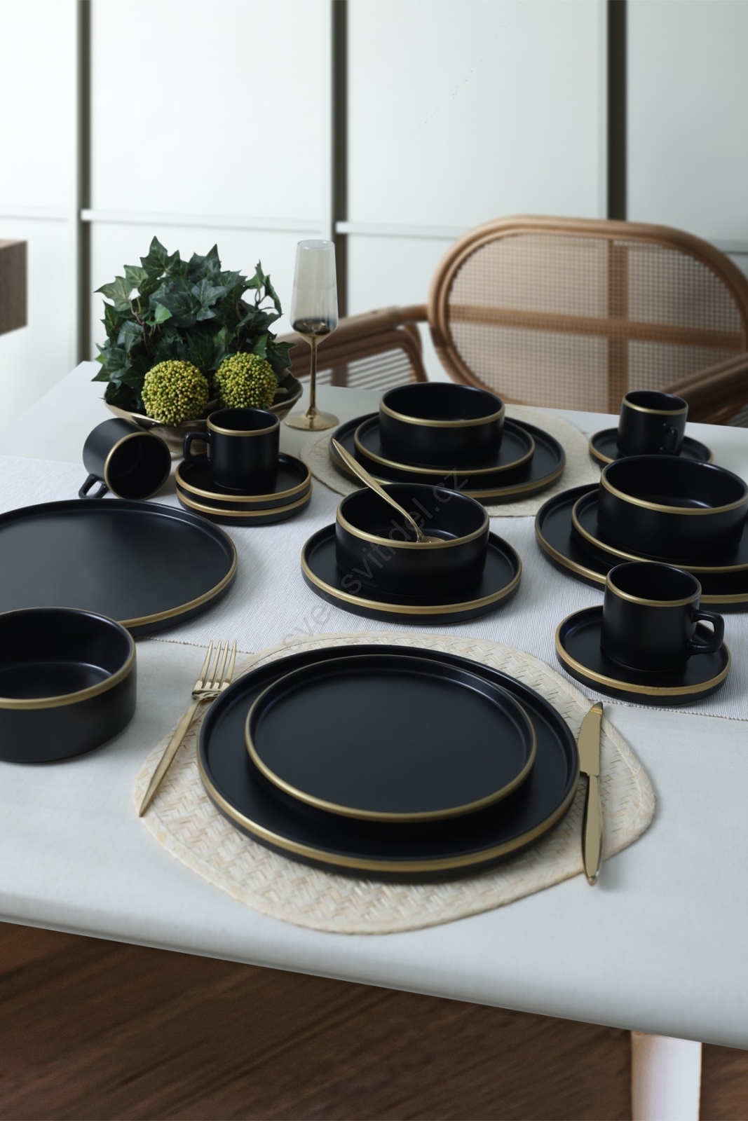 Jídelní sada 20 ks černá/zlatá/kamenina