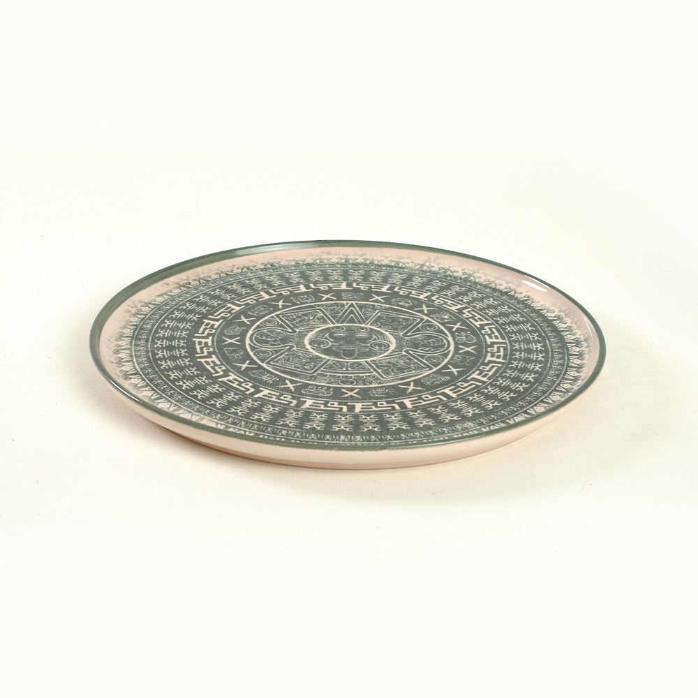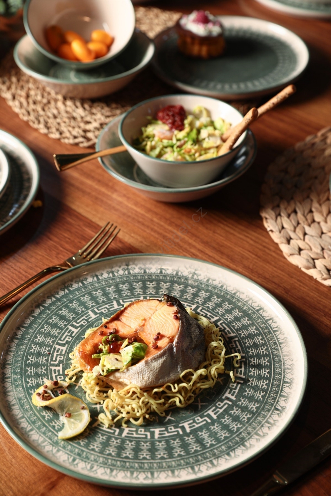 Jídelní sada 24 ks béžová/zelená/kamenina