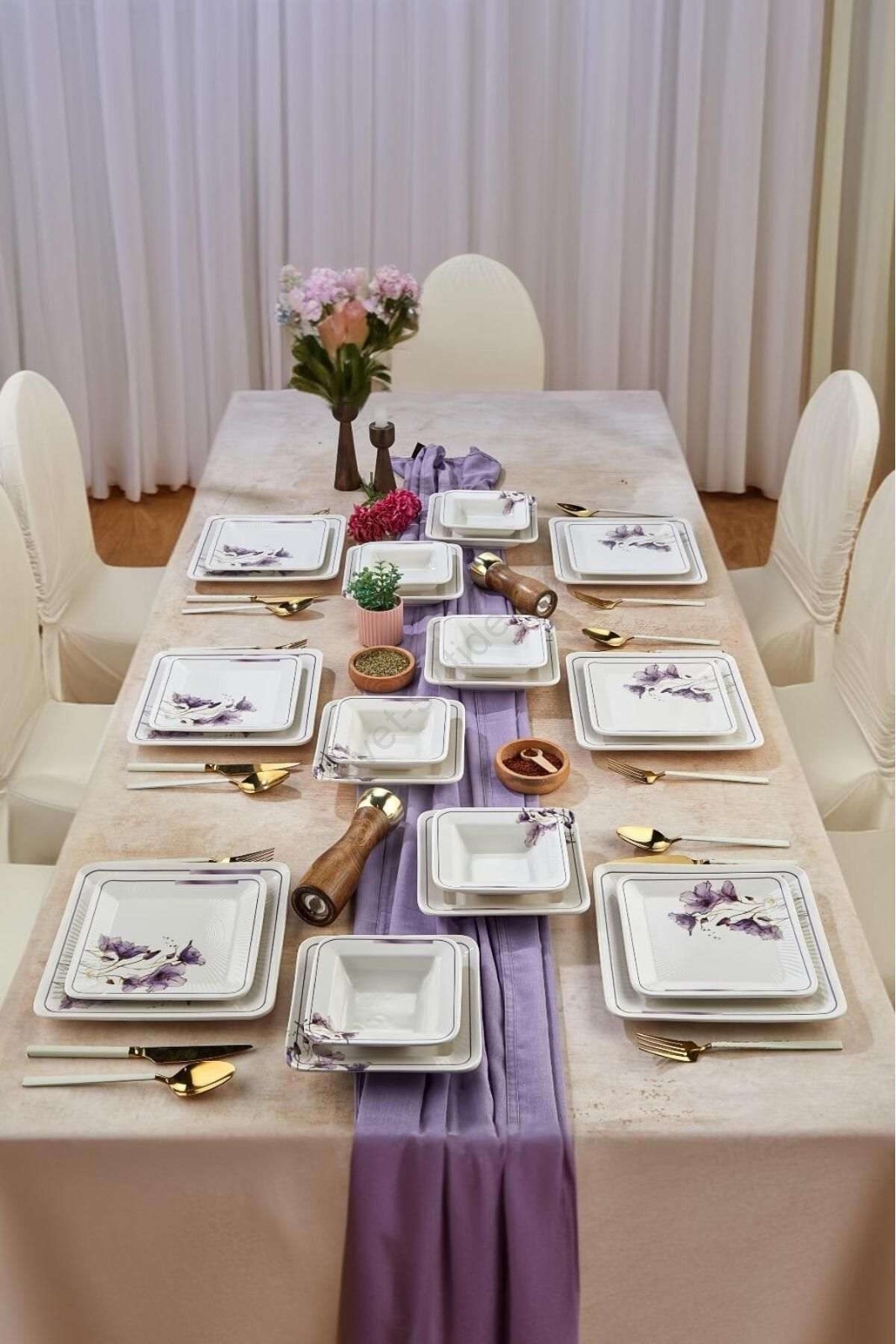 Jídelní sada 24 ks bílá/fialová/keramika