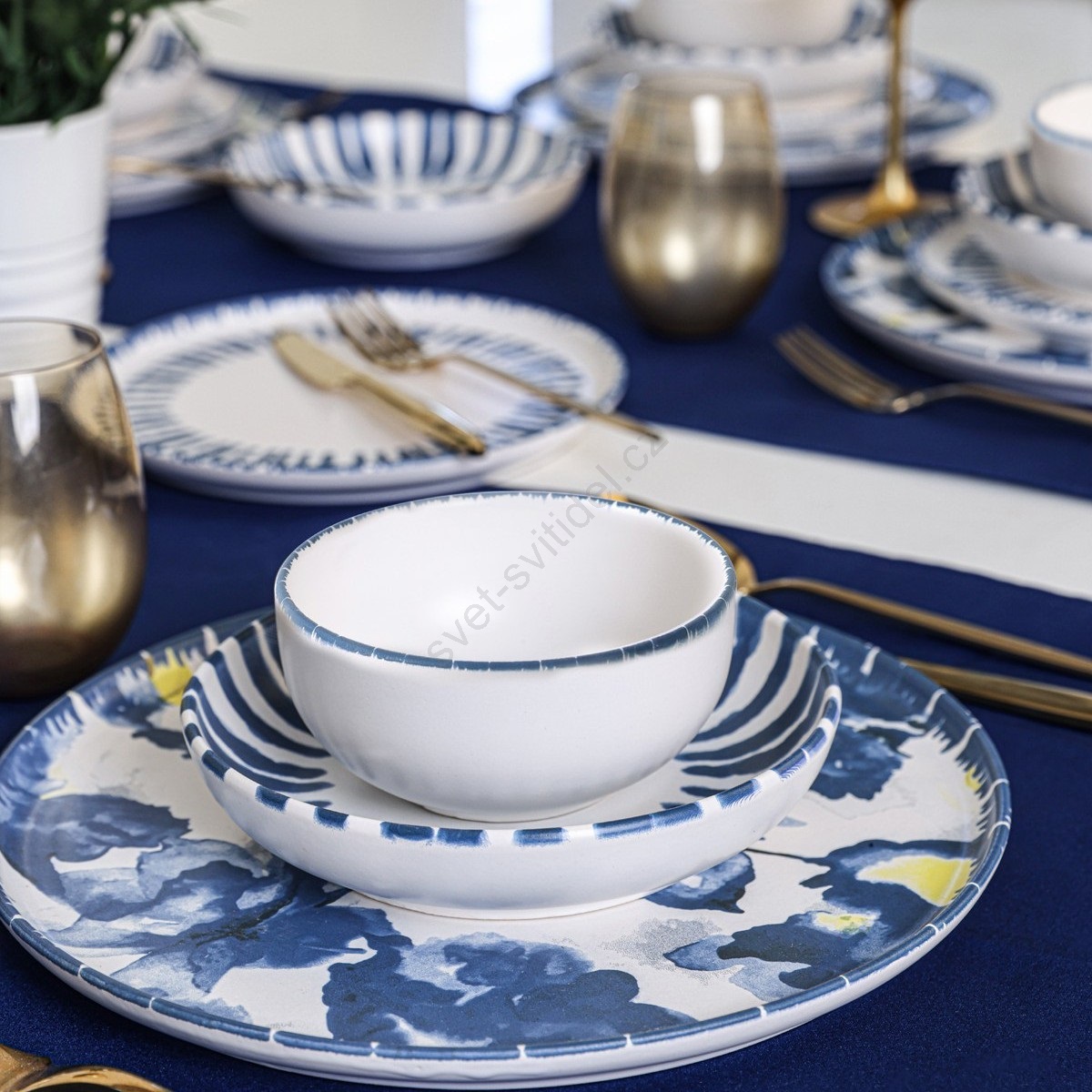 Jídelní sada 24 ks bílá/modrá/kamenina