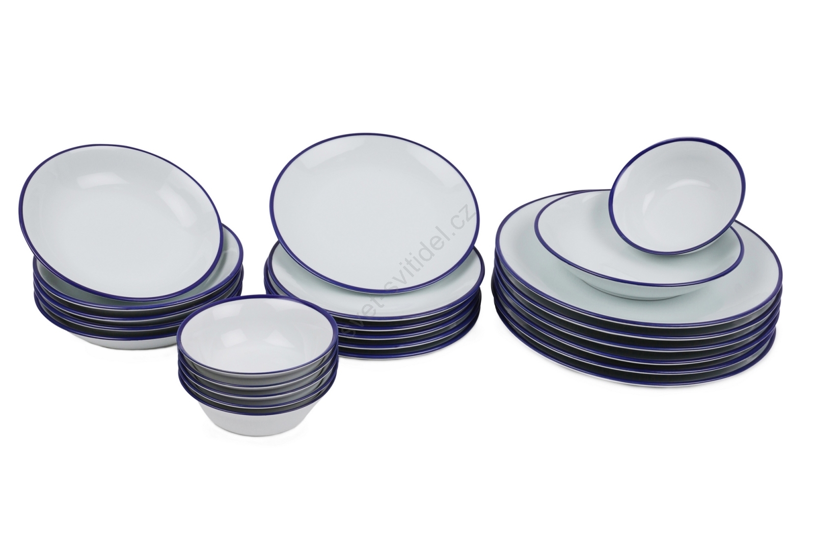 Jídelní sada 24 ks bílá/modrá/porcelán