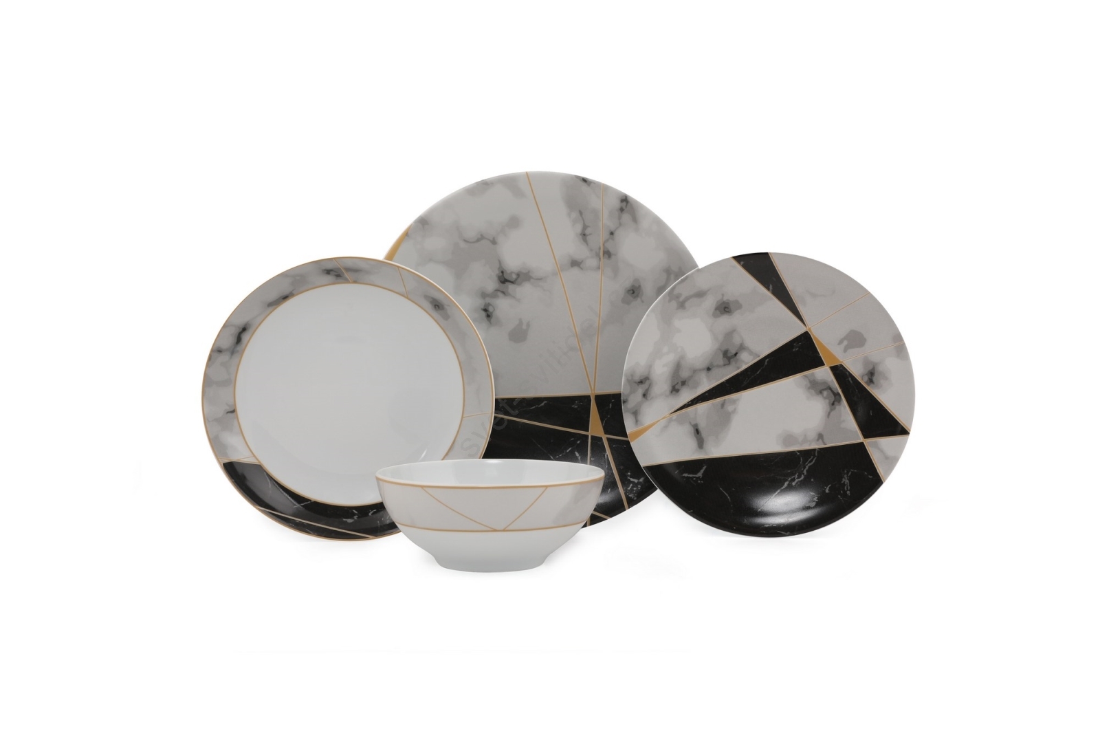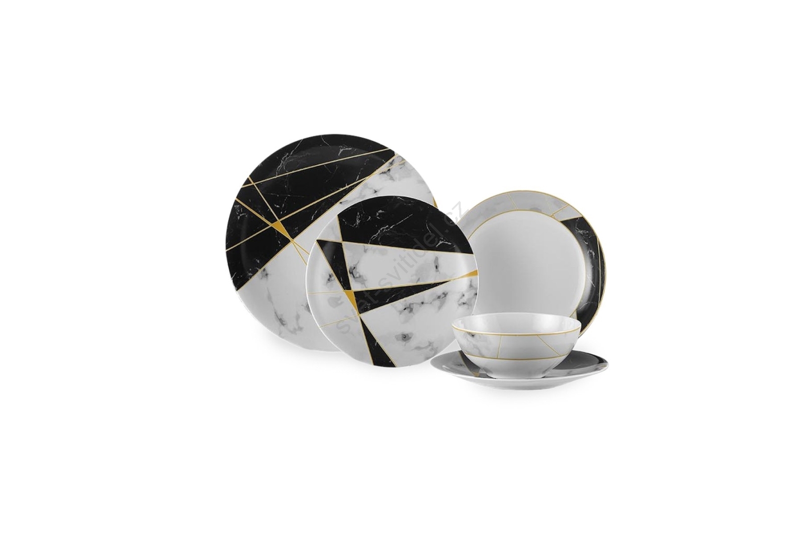 Jídelní sada 24 ks černá/bílá/zlatá/porcelán