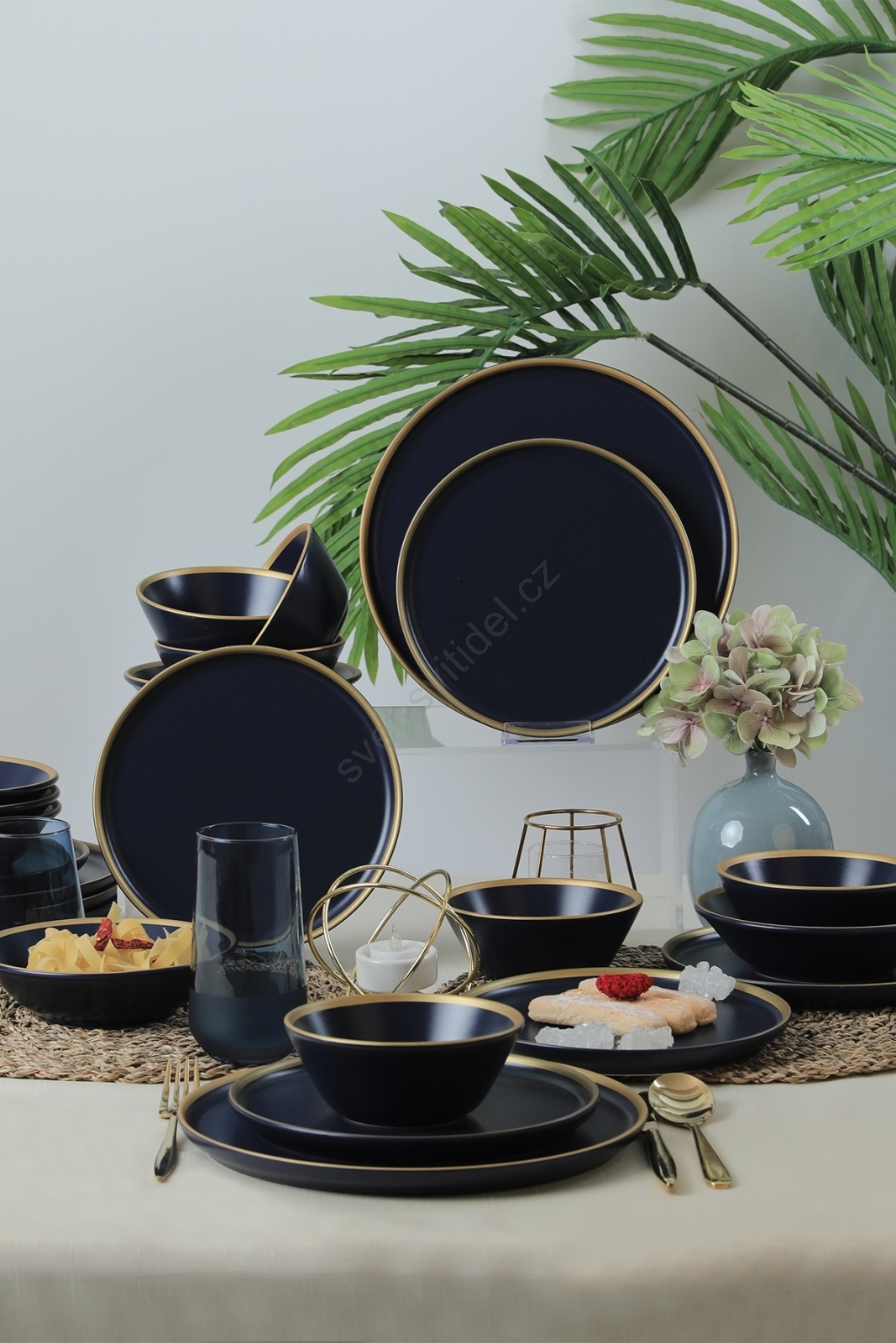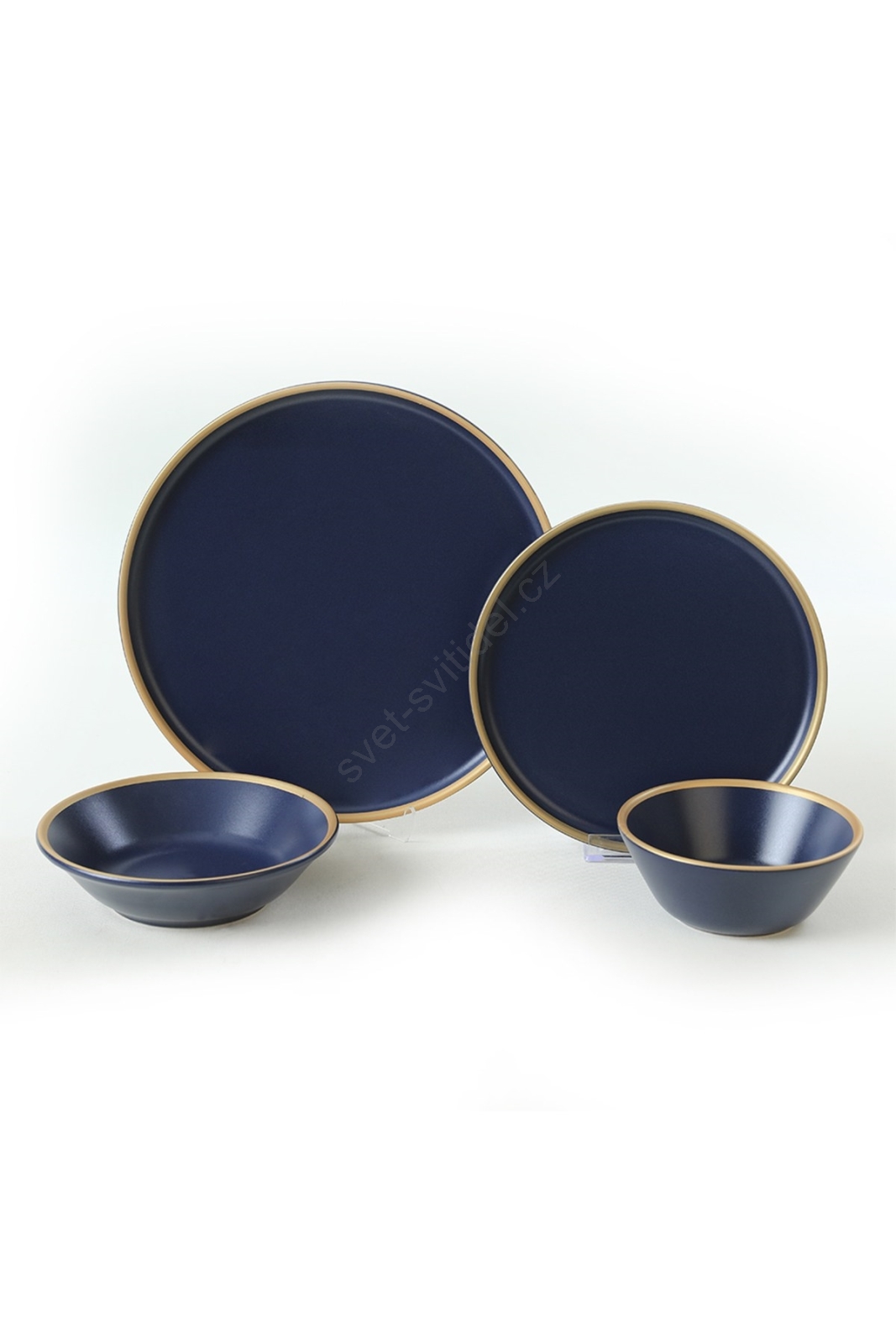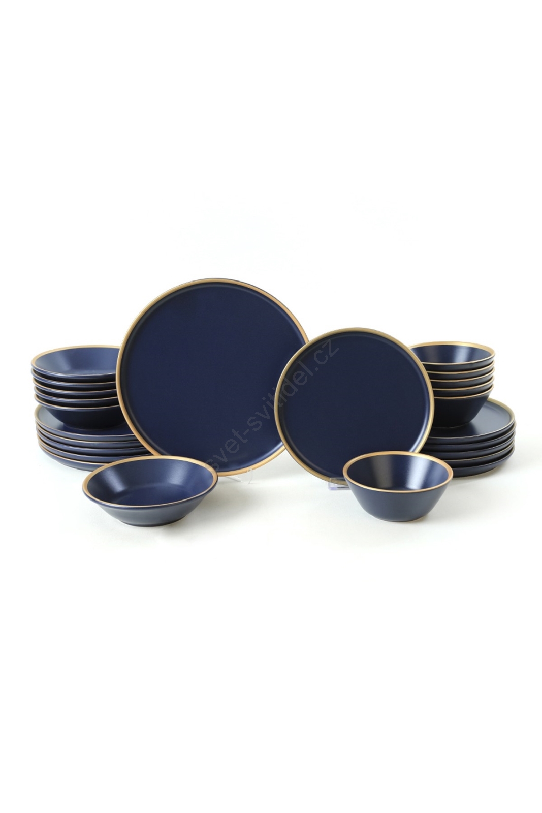 Jídelní sada 24 ks modrá/zlatá/keramika