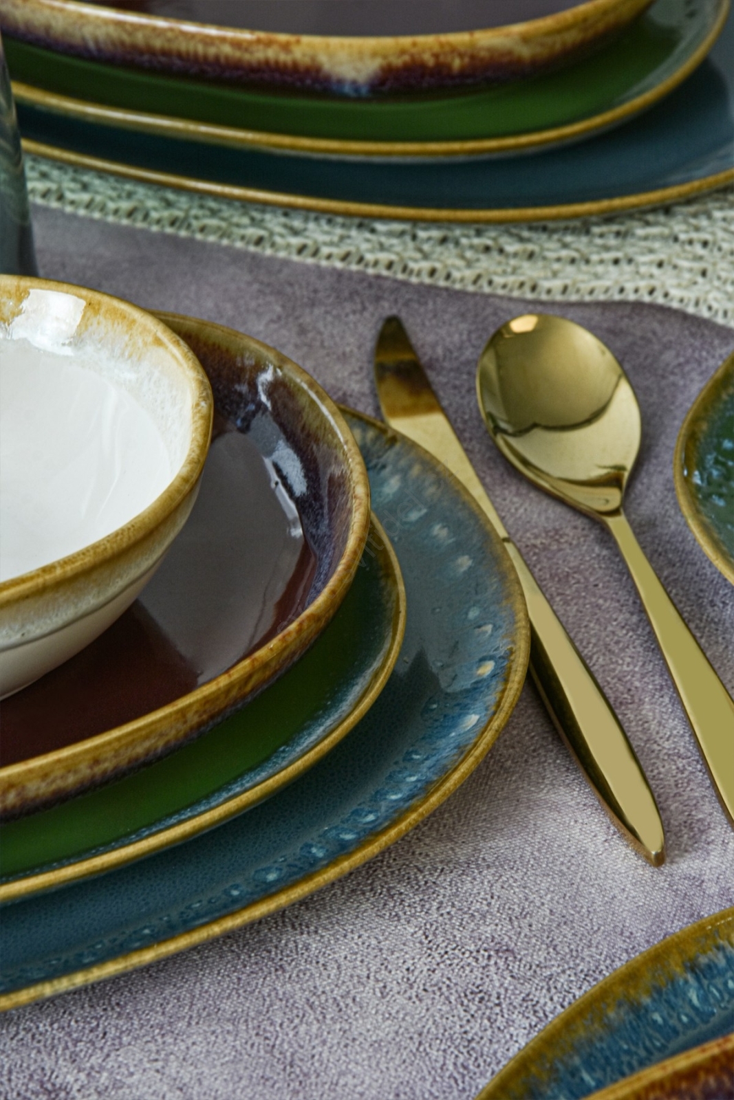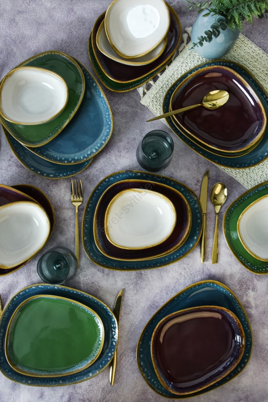 Jídelní sada 24 ks pestrobarevná/kamenina