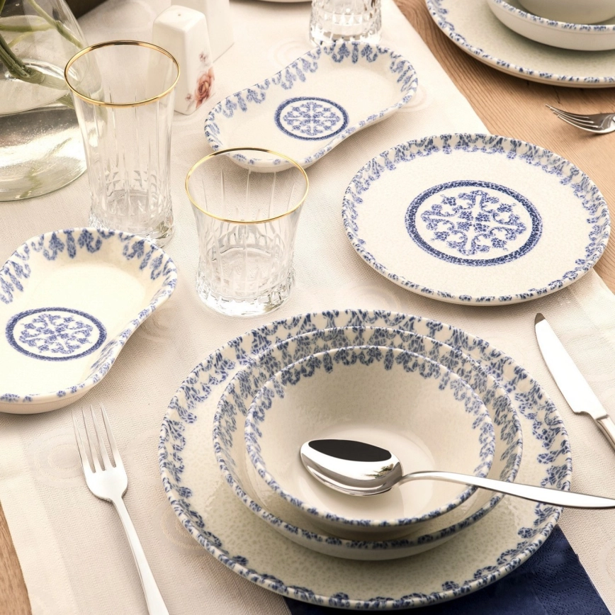 Jídelní sada 27 ks bílá/modrá/porcelán