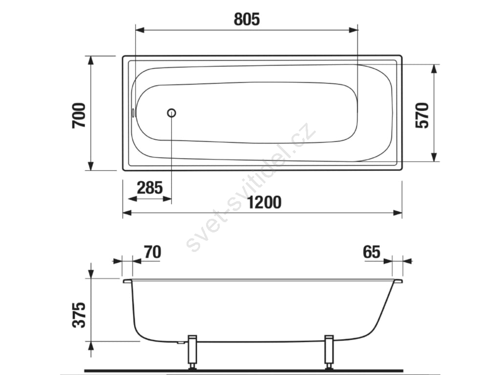 • Klasický obdélníkový tvar s rozměry: 1200 × 700 × 375 mm.