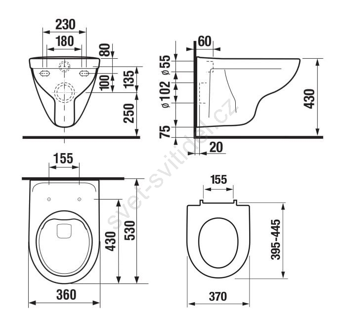 • Závěsná toaleta s hlubokým splachováním bez oplachového kruhu.