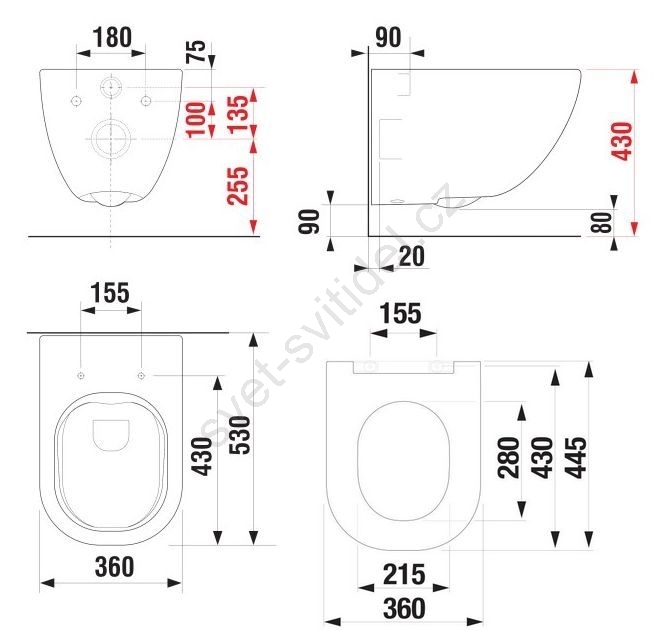 • Závěsná toaleta s hlubokým splachováním bez oplachového kruhu.