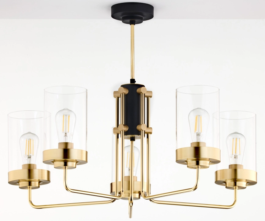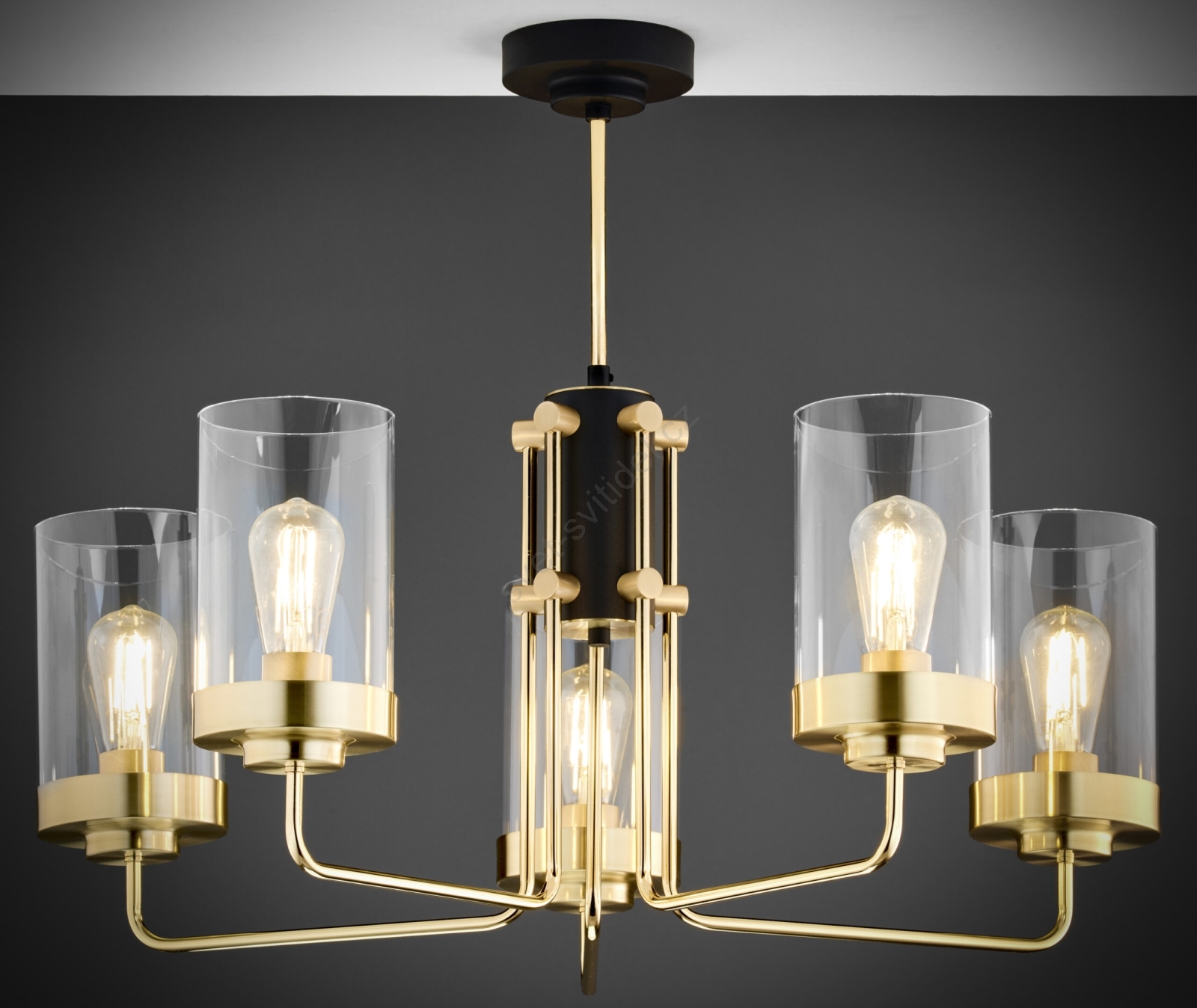 Jupiter 2088 - Lustr na tyči RAMIREZ 5xE27/15W/230V zlatá/černá charakterizuje pěkný design a funkční provedení. Do svítidla je určena žárovka s paticí E27. Zde si můžete koupit další žárovky za výhodnou cenu. Získáte tak zajímavý doplněk do svého domova.