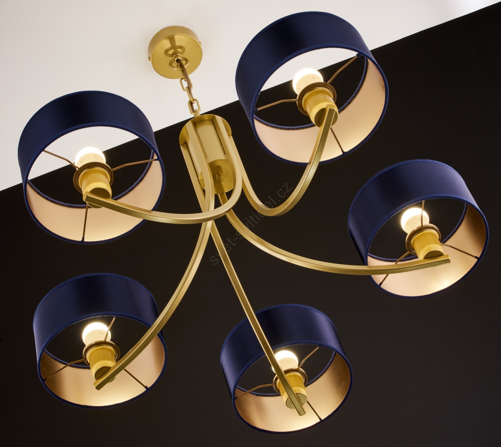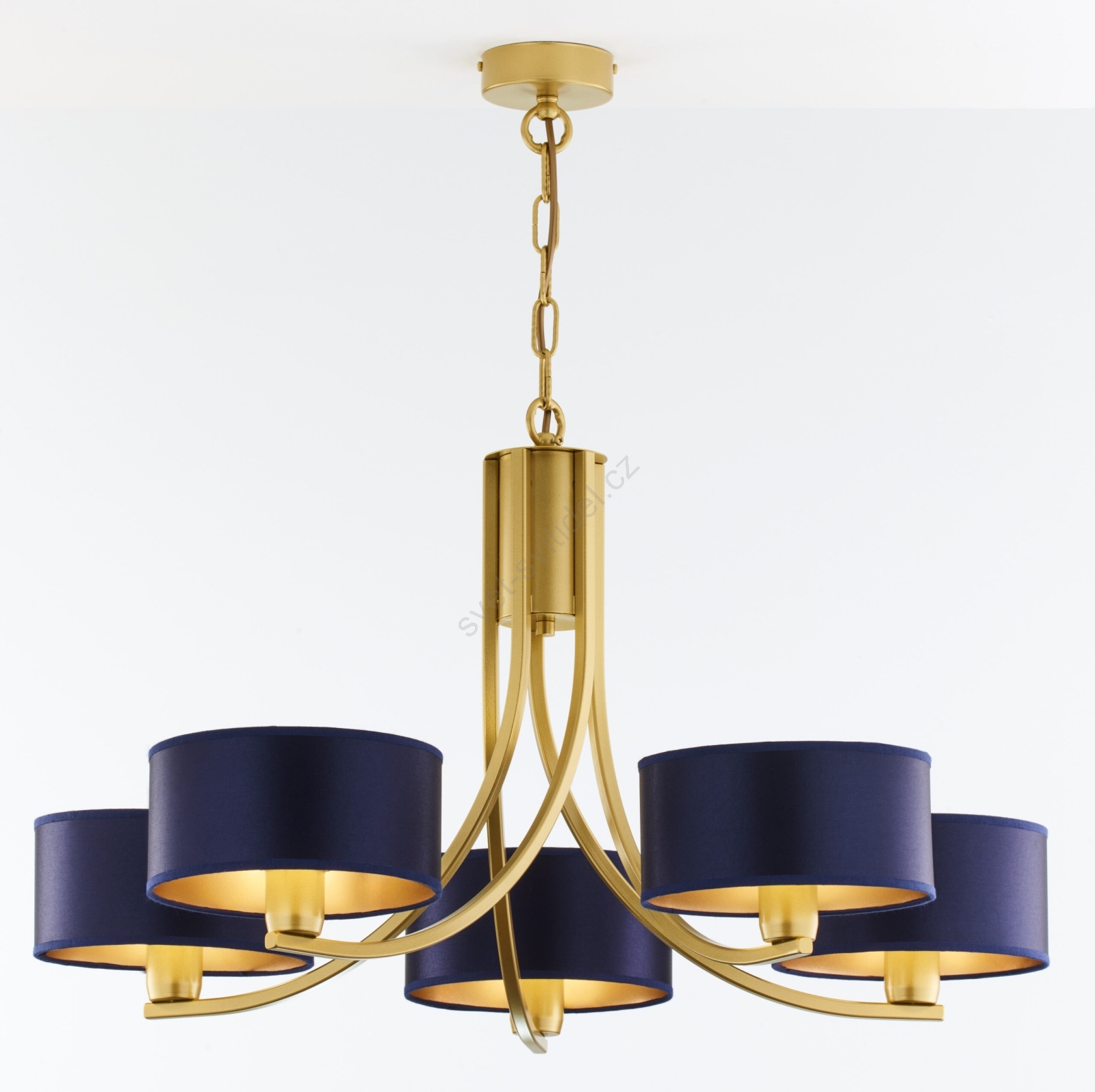 Jupiter 2094 - Lustr na řetězu ARTHUR 5xE27/15W/230V modrá/zlatá charakterizuje pěkný design a funkční provedení. Do svítidla je určena žárovka s paticí E27. Zde si můžete koupit další žárovky za výhodnou cenu. Získáte tak zajímavý doplněk do svého domova.