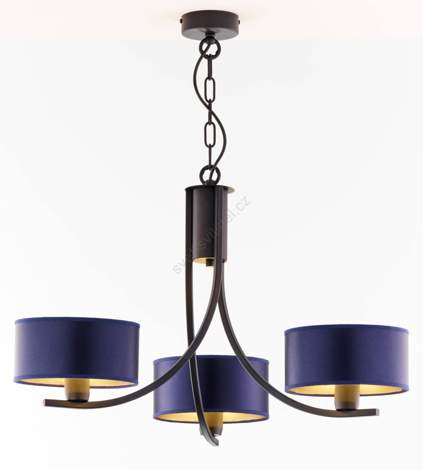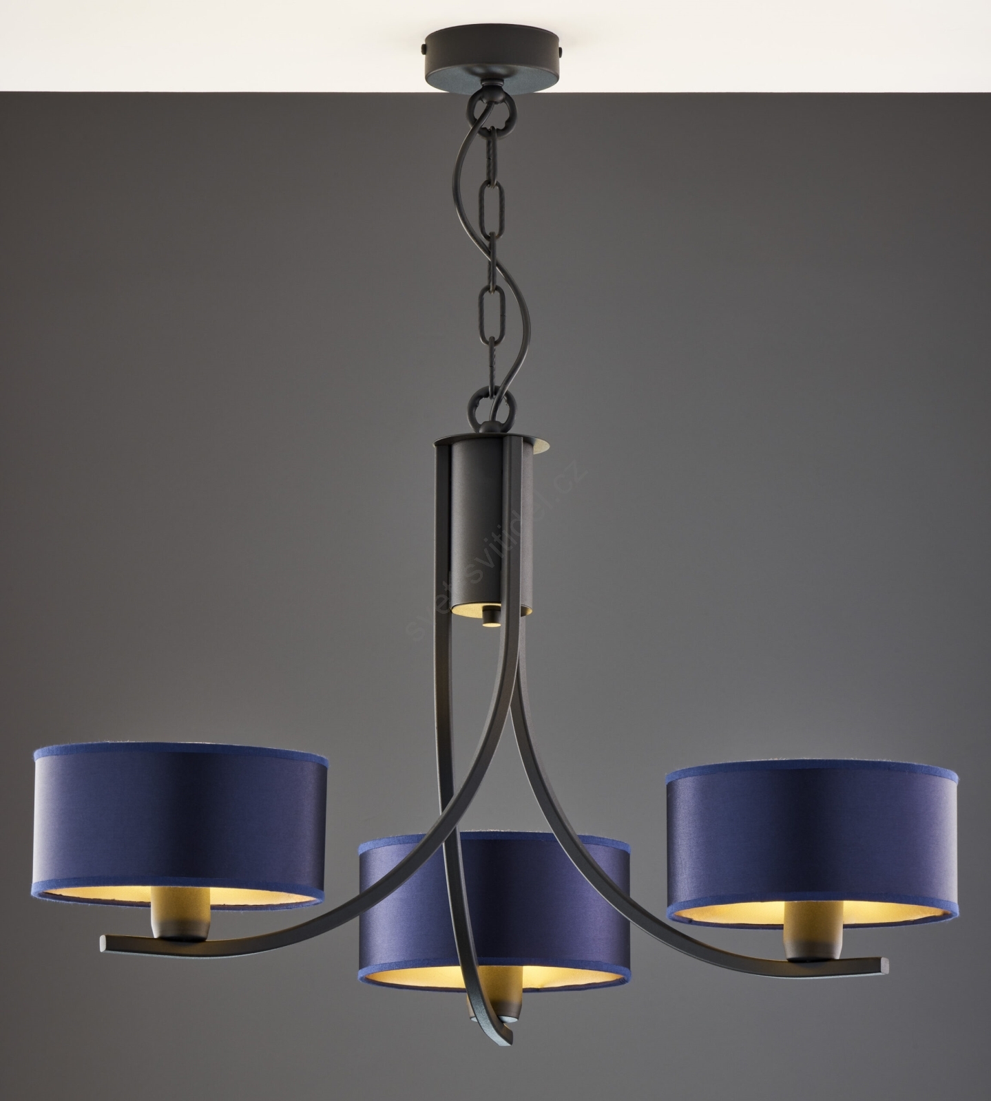 Jupiter 2099 - Lustr na řetězu ARTHUR 3xE27/15W/230V modrá/černá