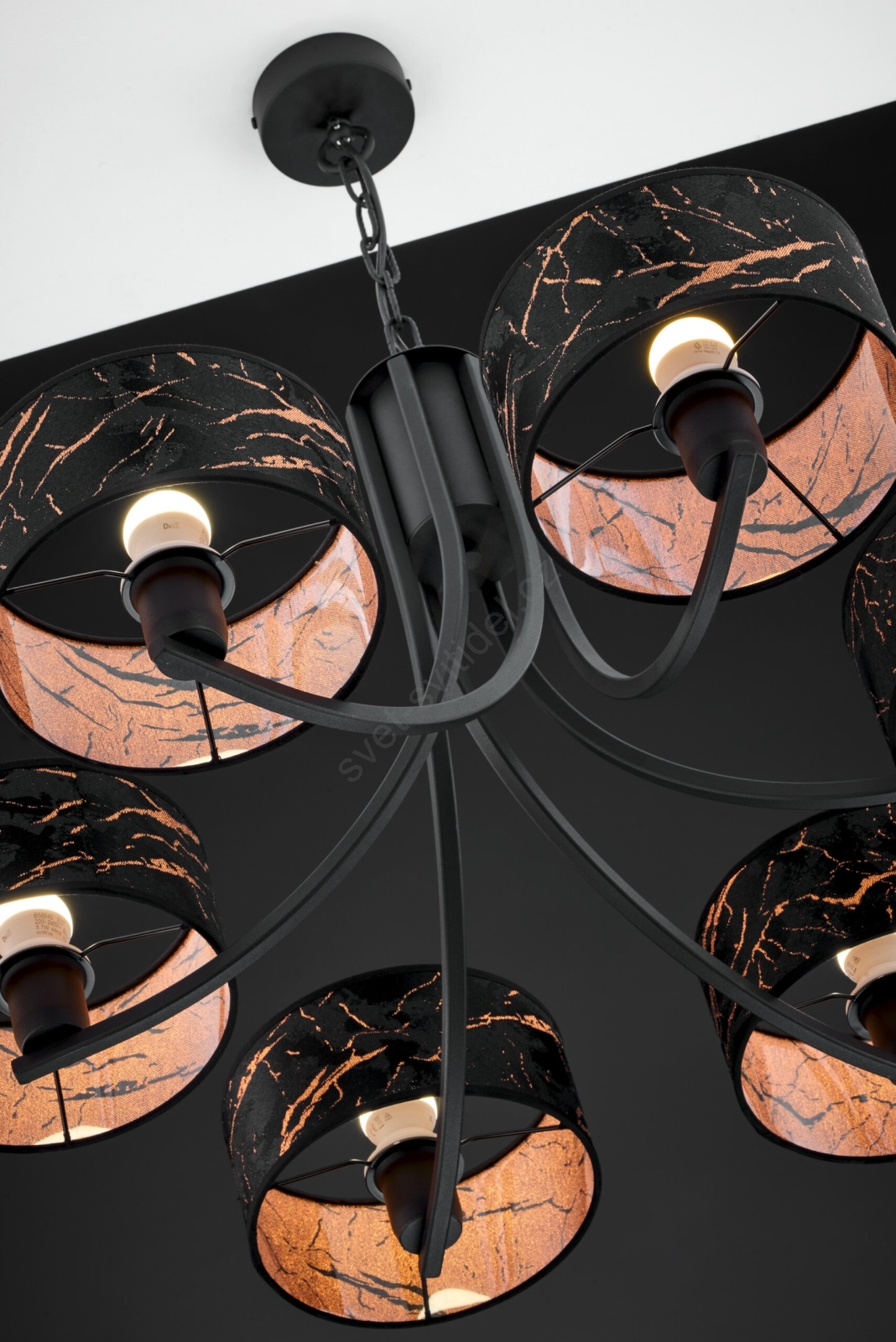 • Jupiter 2108 - Lustr na řetězu ARTHUR 6xE27/15W/230V černá/oranžová/dekor mramoru
