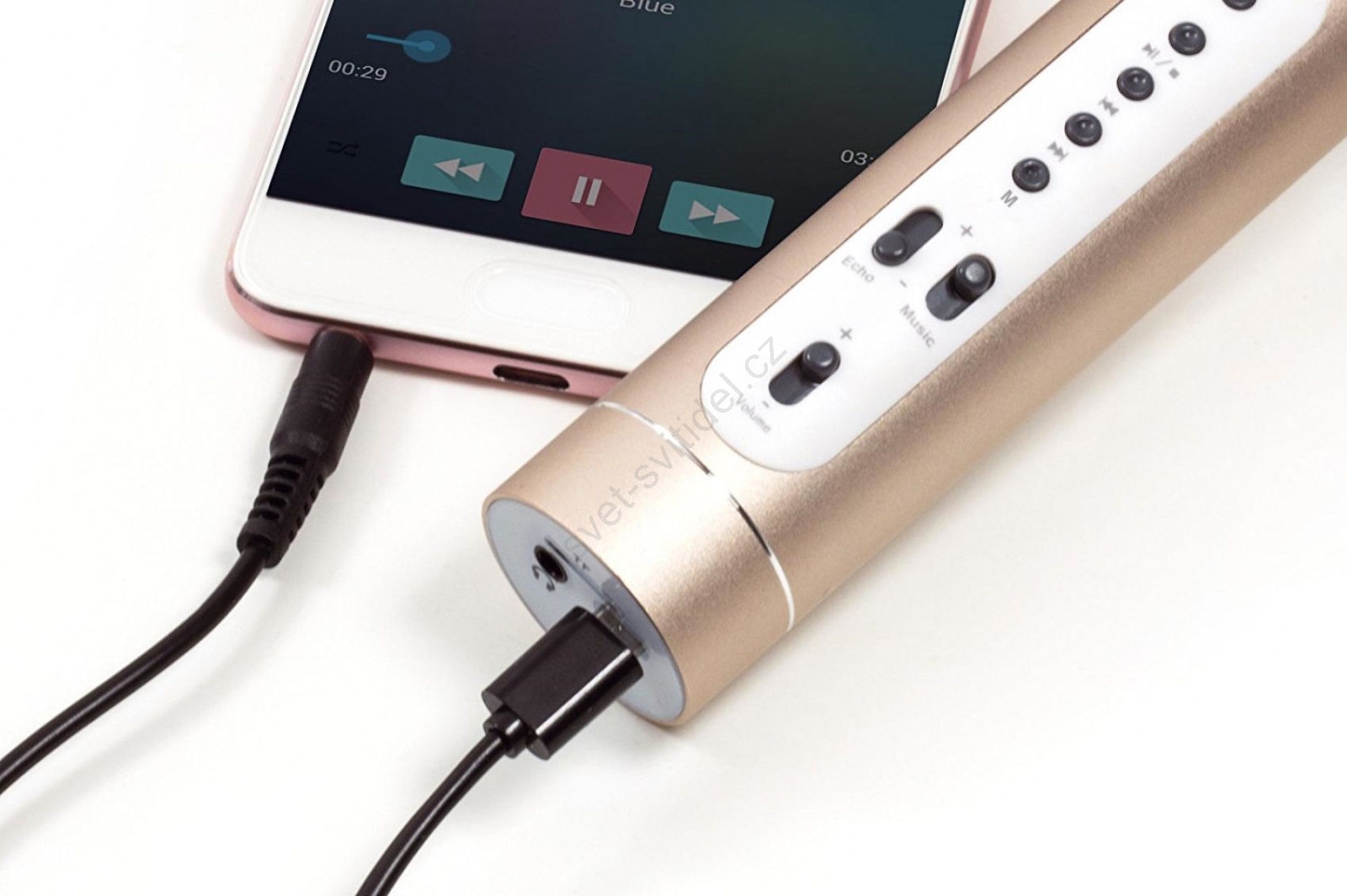 Karaoke mikrofon 6W/5V 1500 mAh Bluetooth zlatá