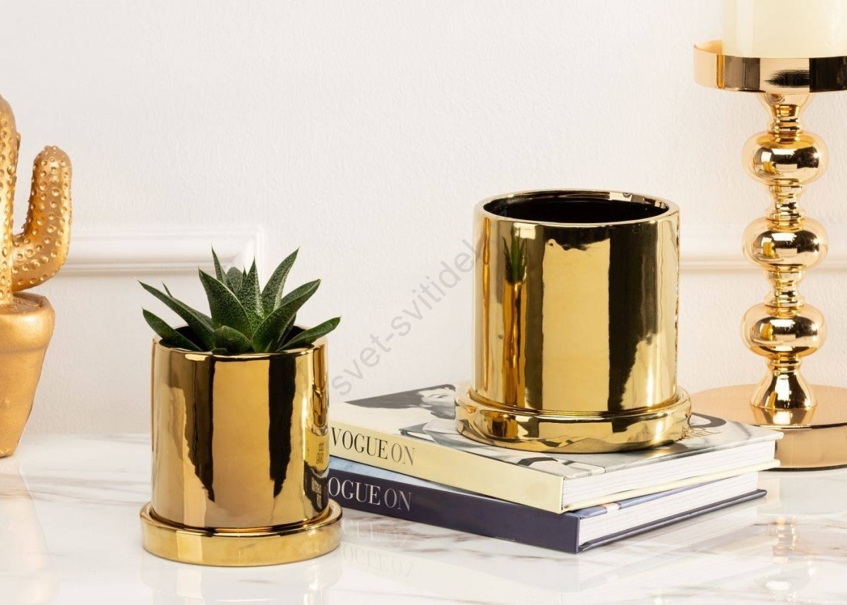 Keramický květináč s miskou HANYA 13x13 cm zlatá