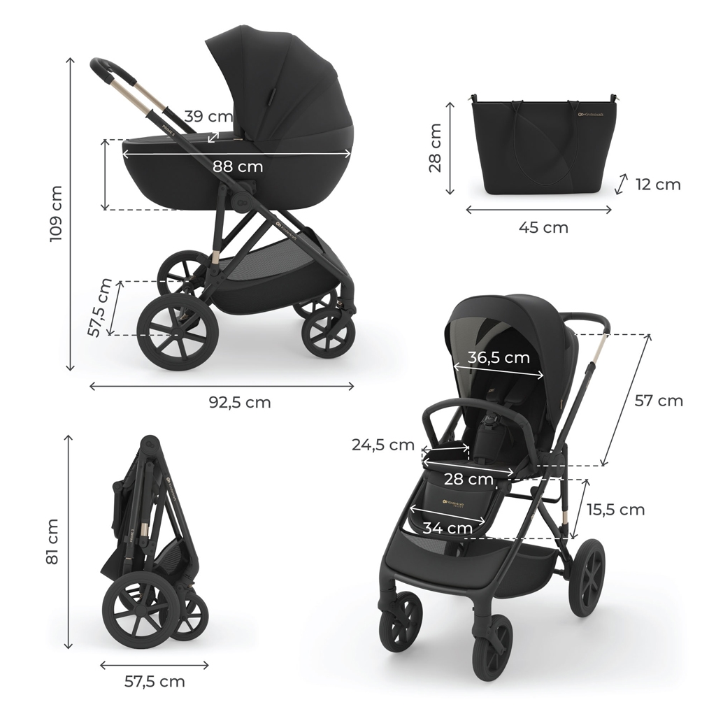 KINDERKRAFT - Kombinovaný kočárek 3v1 PRIME 3 Venezian Black