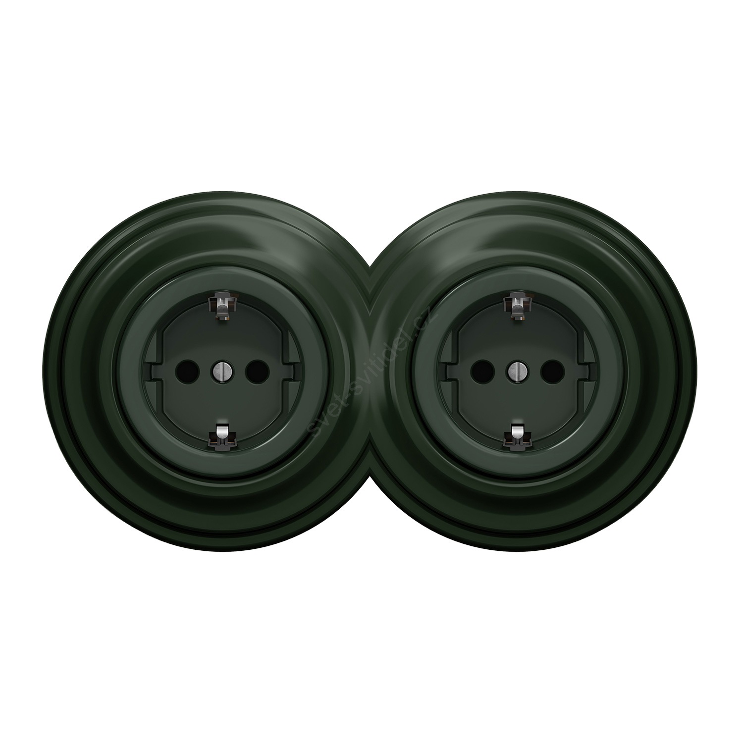 Kliklap - Dvojitá retro zásuvka domovní s rámečkem SCHUKO 230V zelená