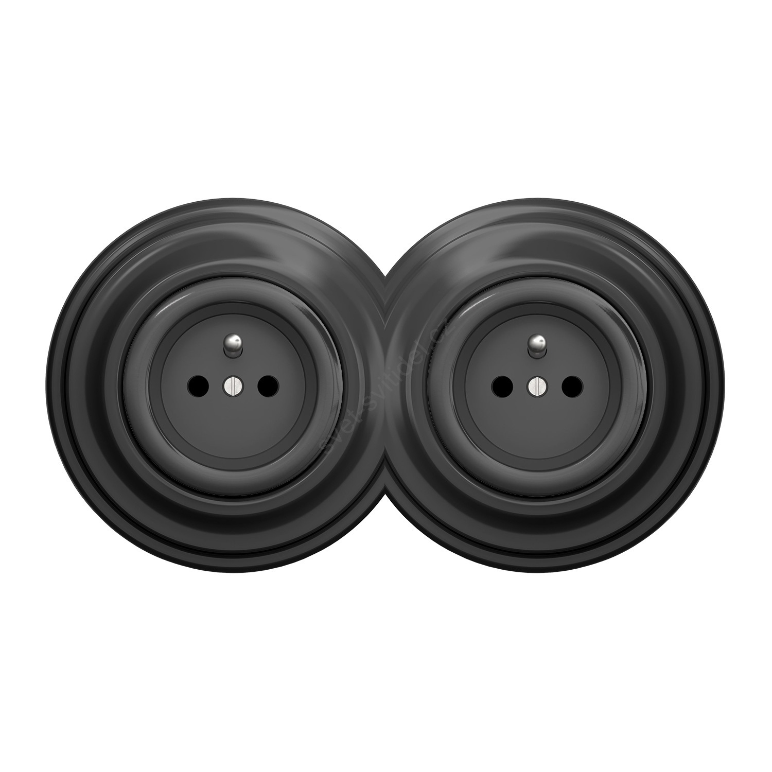 Kliklap - Dvojitá retro zásuvka domovní s rámečkem 230V antracit