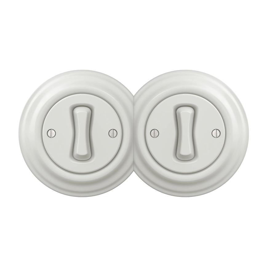 Kliklap - Dvojitý retro jednopólový vypínač s rámečkem č. 1 keramická bílá