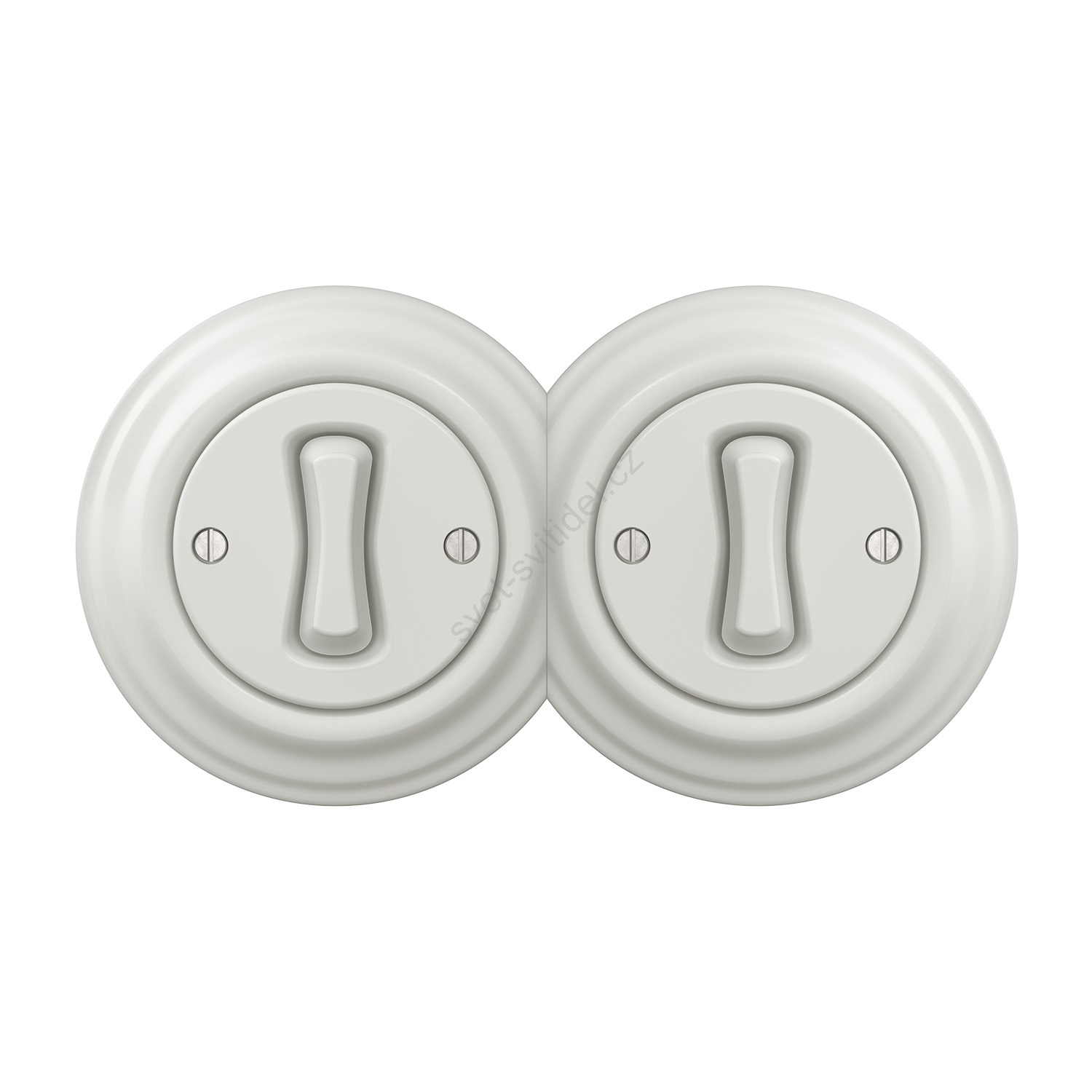 • Kliklap - Dvojitý retro jednopólový vypínač s rámečkem č. 1 keramická bílá