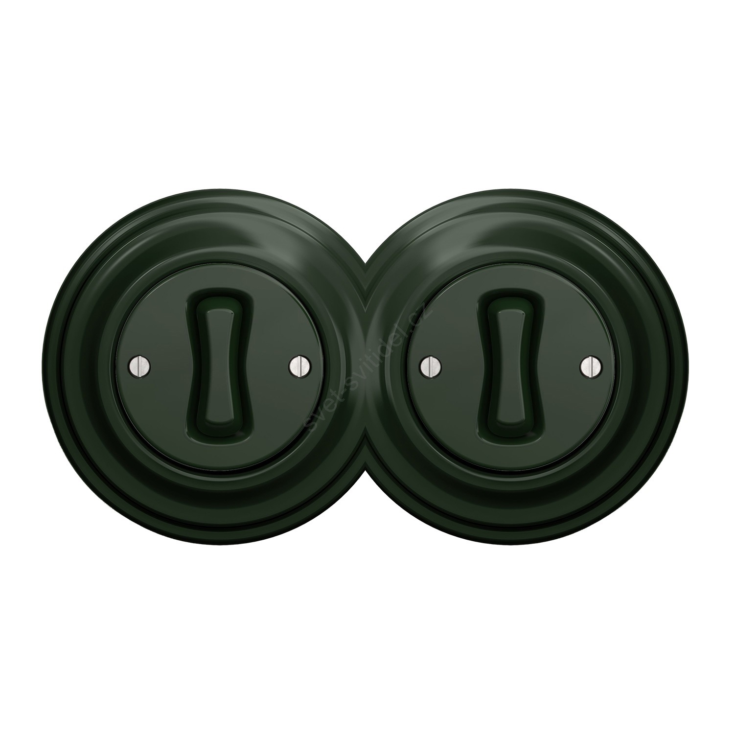 Kliklap - Dvojitý retro jednopólový vypínač s rámečkem č. 1 zelená
