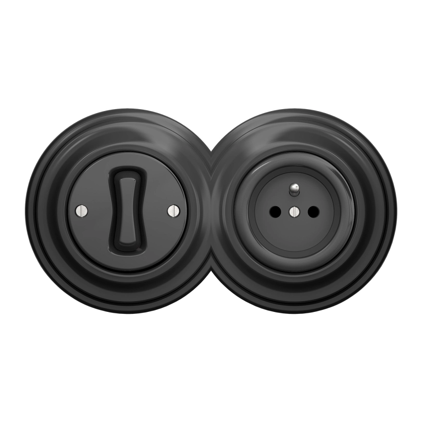 Kliklap - Retro jednopólový vypínač č. 1 a zásuvka 230V s rámečkem antracit