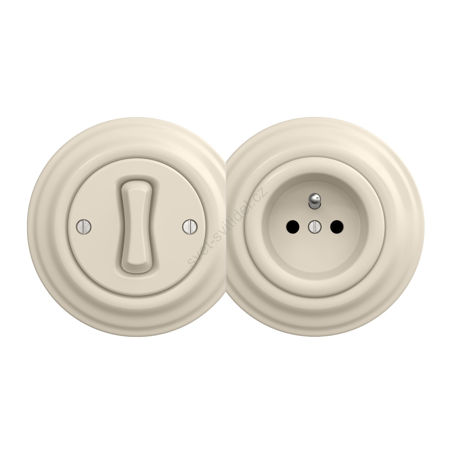 Kliklap - Retro jednopólový vypínač č. 1 a zásuvka 230V s rámečkem béžová