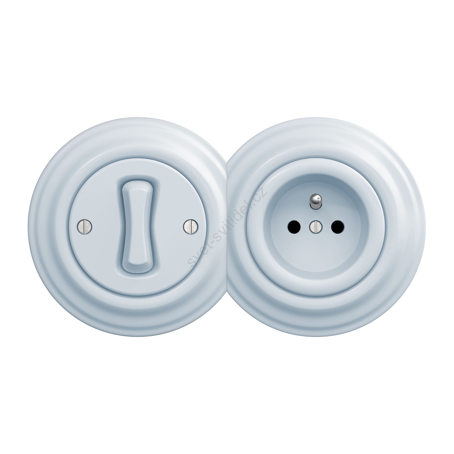 Kliklap - Retro jednopólový vypínač č. 1 a zásuvka 230V s rámečkem modrá