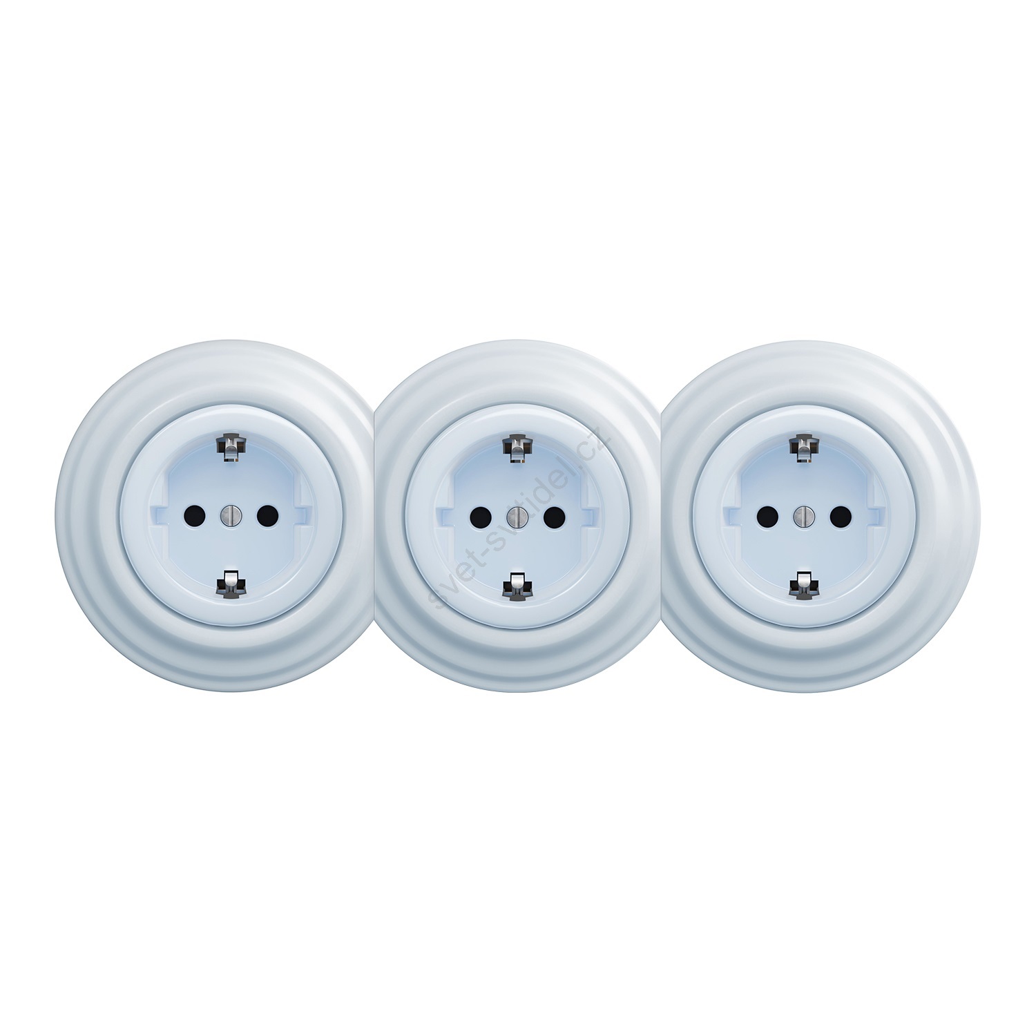 Kliklap - Trojitá retro zásuvka domovní s rámečkem SCHUKO 230V modrá