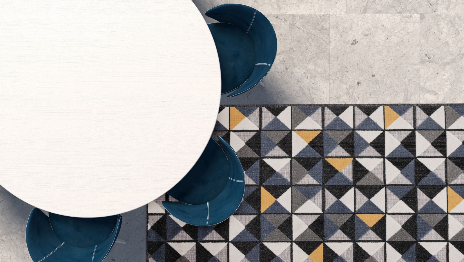 • Vlas má moderní geometrický vzor a různé výšky vlasu, což koberci dodává 3D efekt.