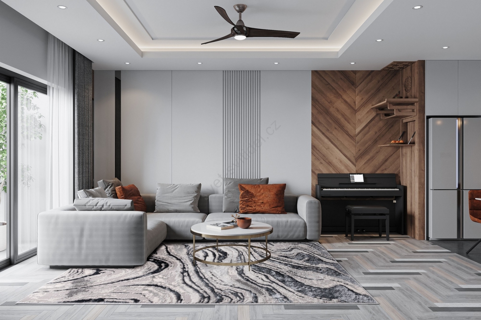 • Estetický a moderní koberec s jemnými abstraktními vzory.
