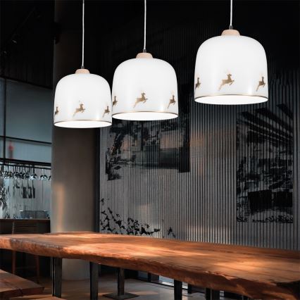 Kolarz A1352.31.Au.100 - Lustr na lanku NONNA 1xE27/60W/230V jeleni dub/bílá/zlatá