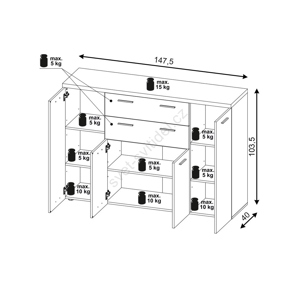 • Horní deska je dostatečně prostorná pro uložení dekorací, elektroniky nebo dalších nezbytností.