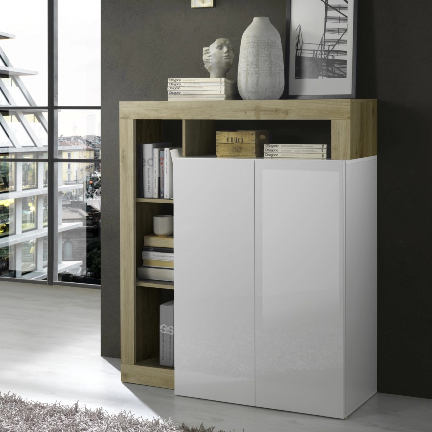 Komoda LENOR bílá/světlý dub