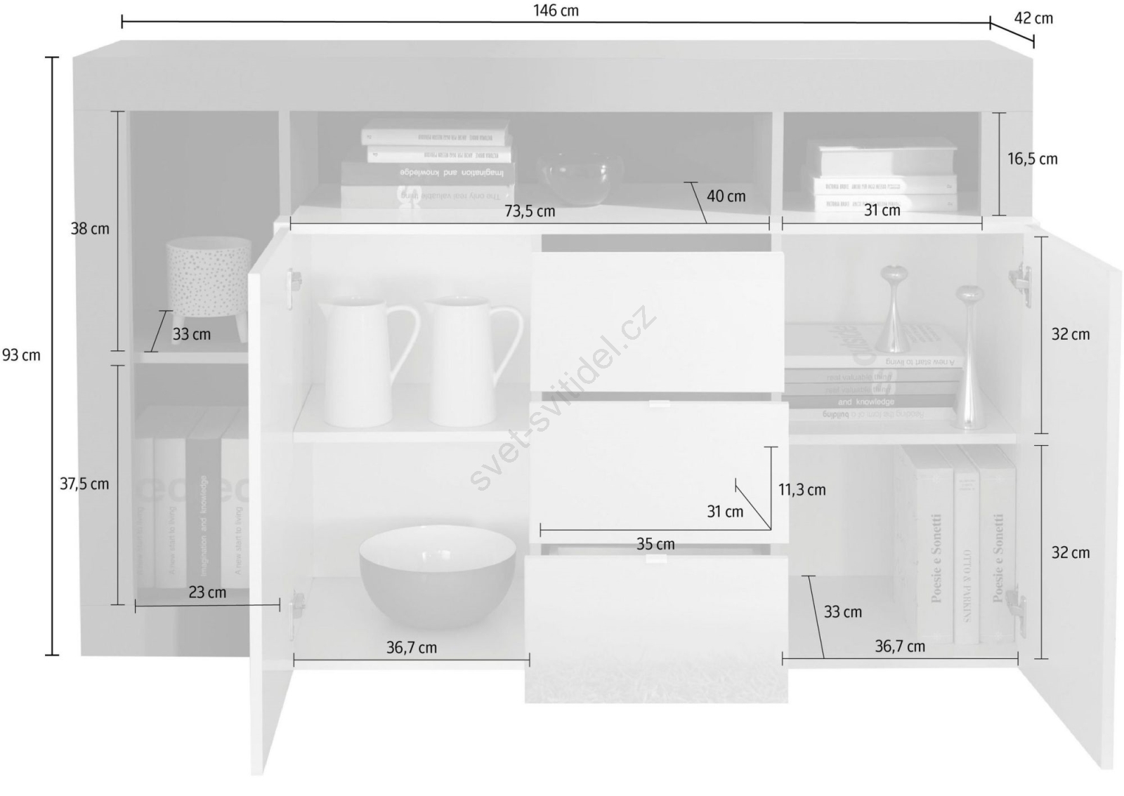 • Díky skříňkám a zásuvkám nabízí velkorysý úložný prostor pro organizaci předmětů denní potřeby.