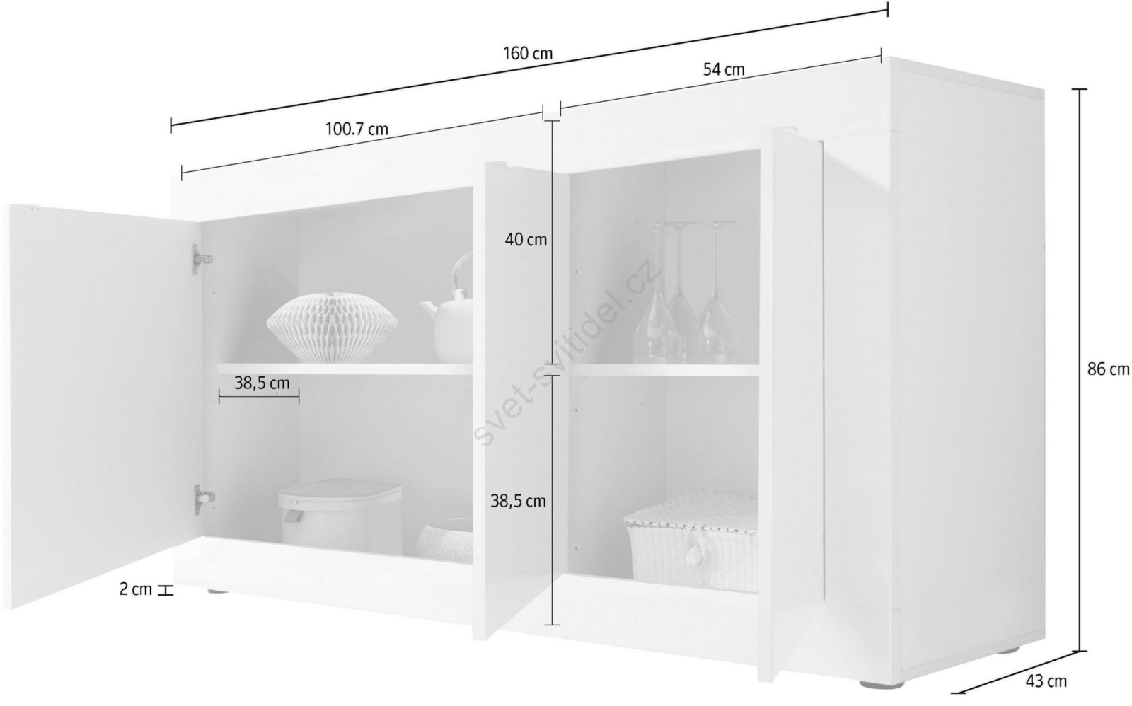 • Díky skříňkám nabízí velkorysý úložný prostor pro organizaci předmětů denní potřeby.