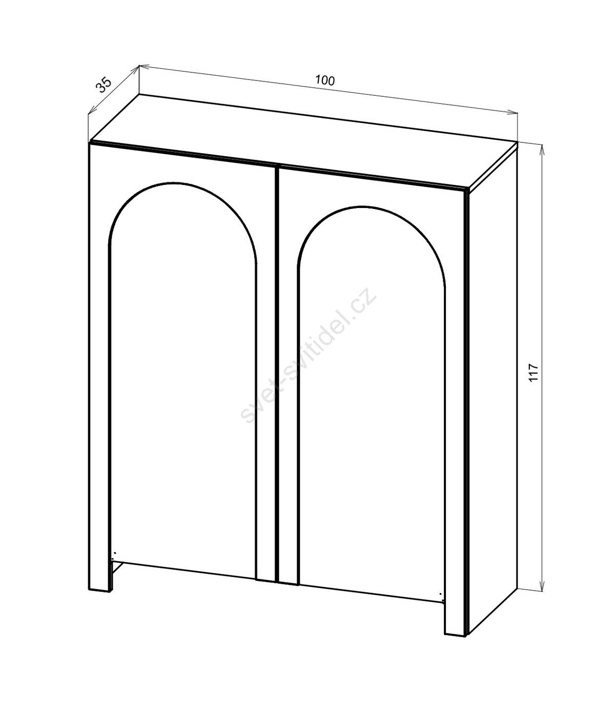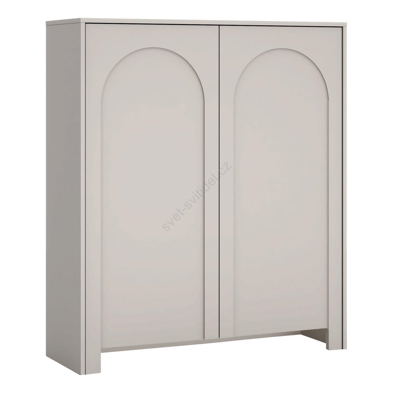 • Má dvě dvířka, z nichž každé je zdobeno jemným klenutým vzorem pro rafinovaný vizuální efekt.