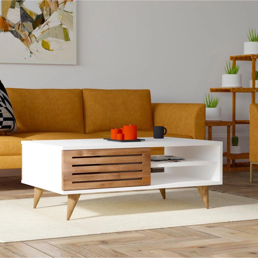 Konferenční stolek GRANDE 42x100 cm bílá/hnědá