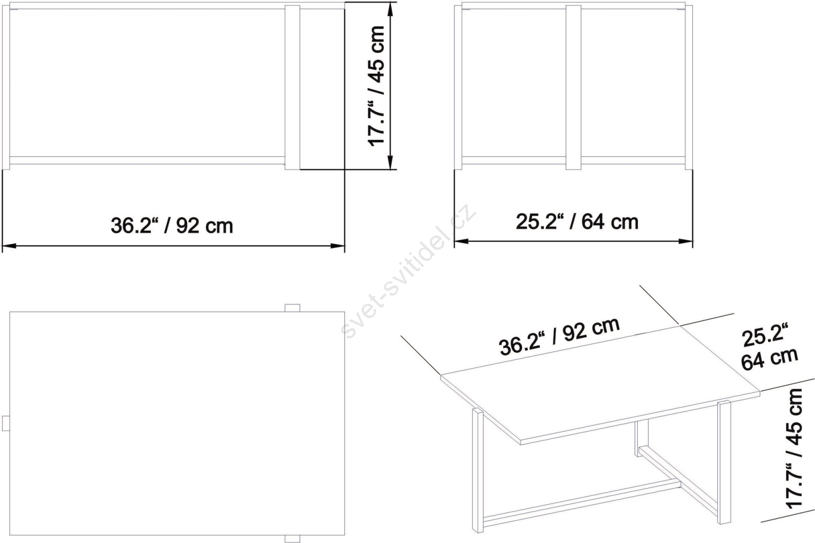 • Vyrobeno z laminované dřevotřísky, nohy z kovu.