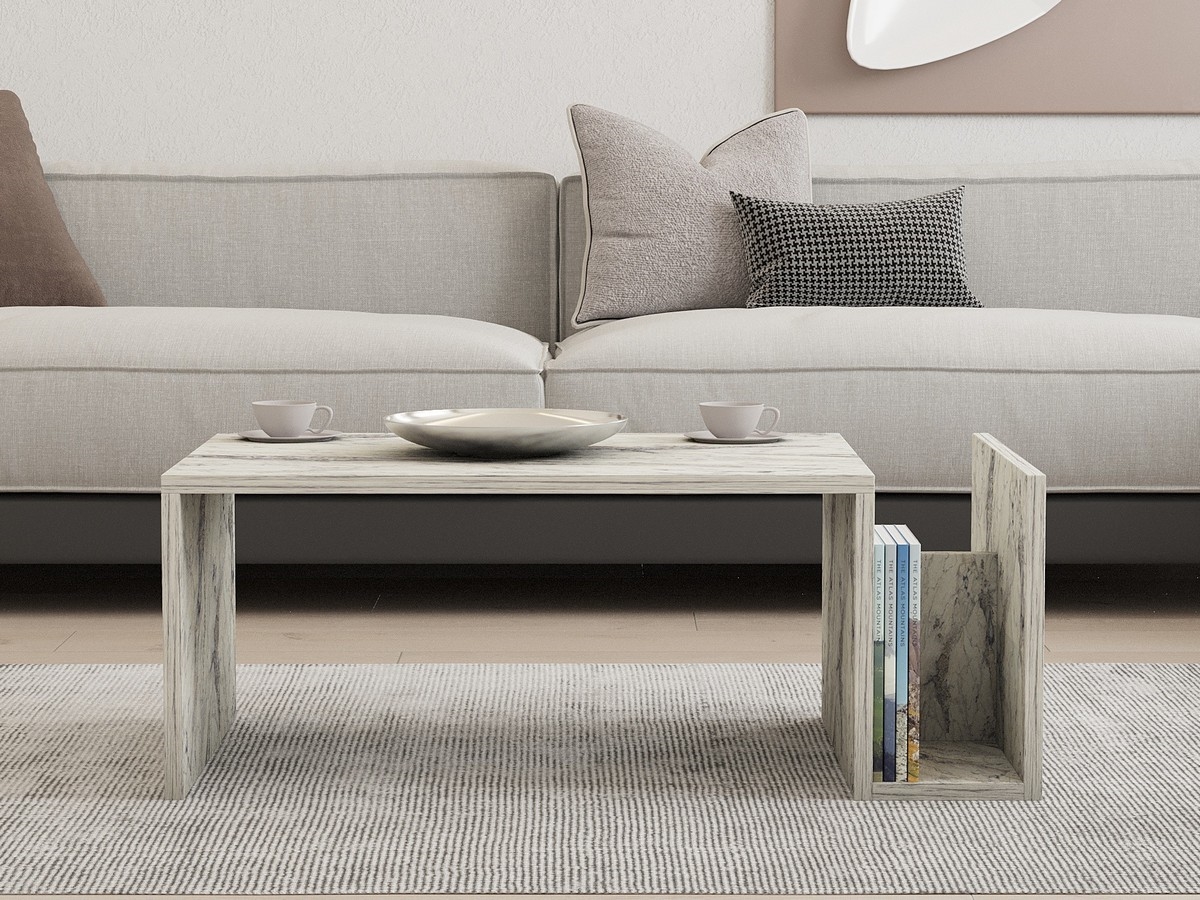 • Do boční otevřené poličky si uložte knihy, dekorace a drobnosti.