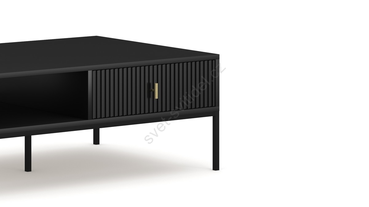 • Má jednu otevřenou přihrádku a dvě zásuvky zdobené vertikálním žebrováním pro rafinovaný vizuální efekt.