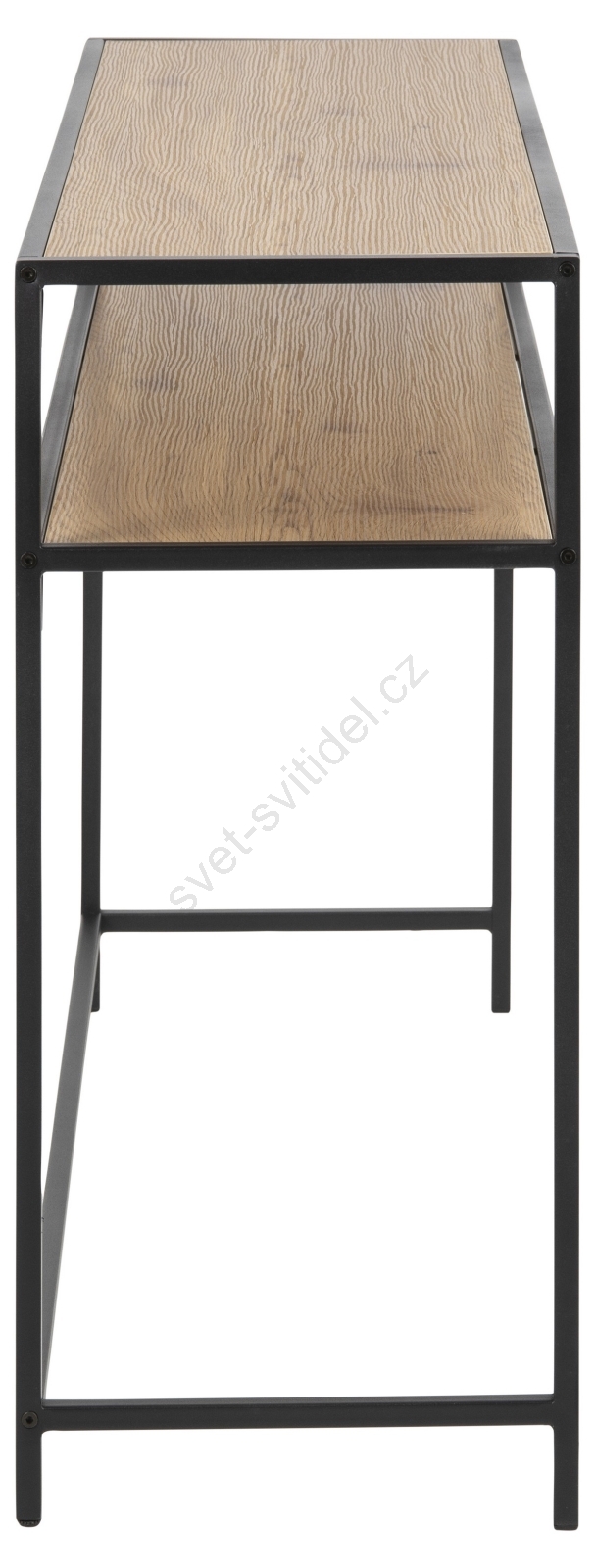 • Horní deska a police z matného craftu, podnož z matné černé oceli s hrubým práškovým nástřikem.