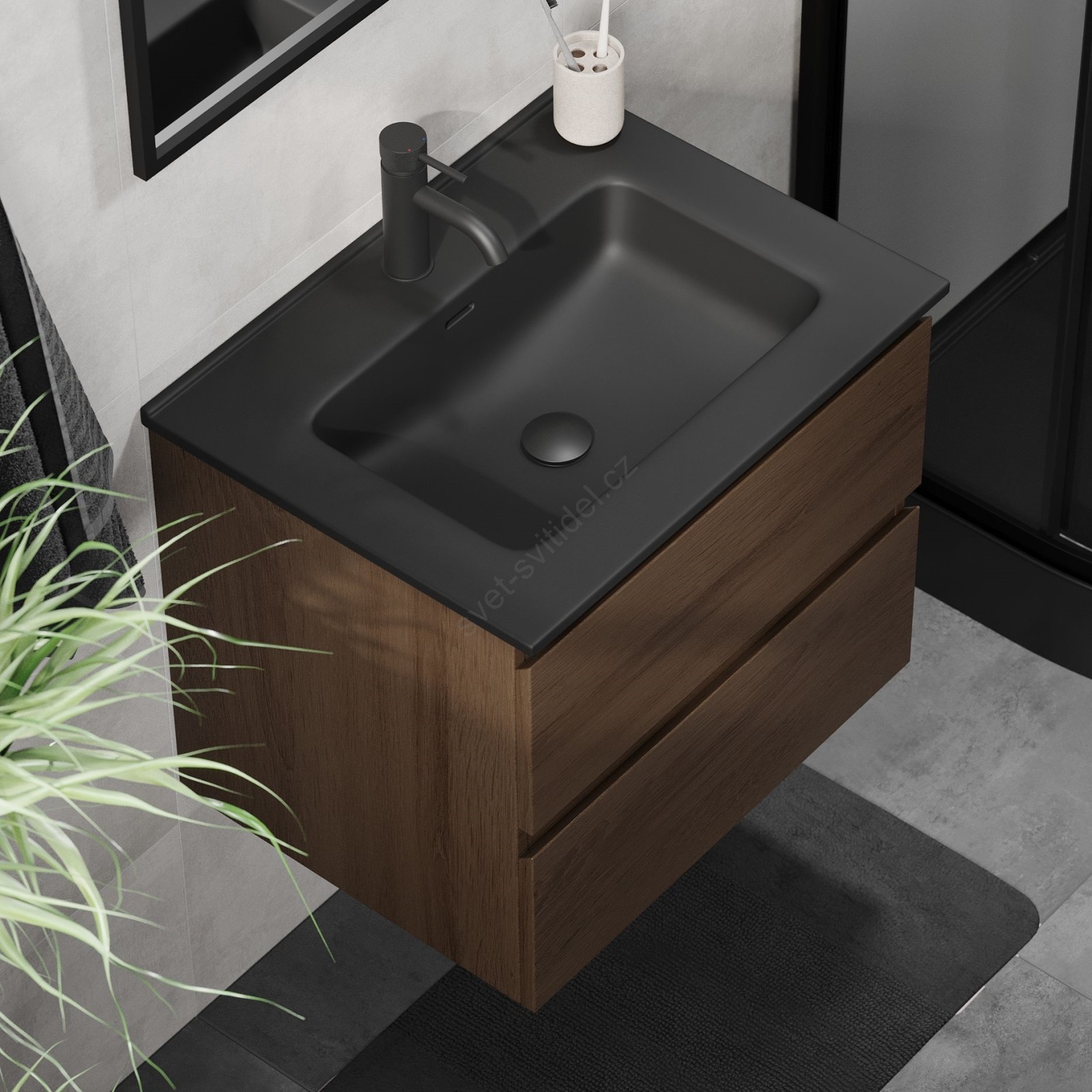 Koupelnová skříňka s umyvadlem CONOR 61 cm ořech/černá
