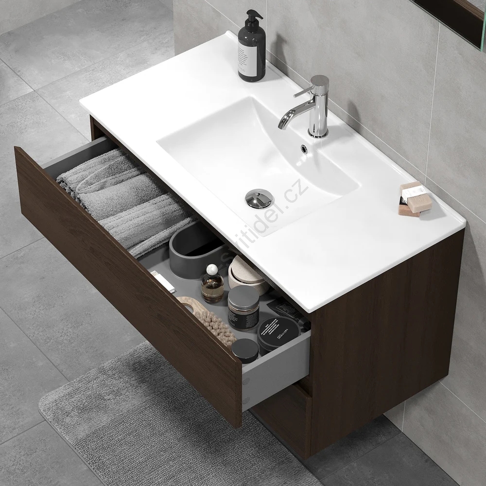 • Koupelnová skříňka s umyvadlem KENWOOD 91 cm ořech